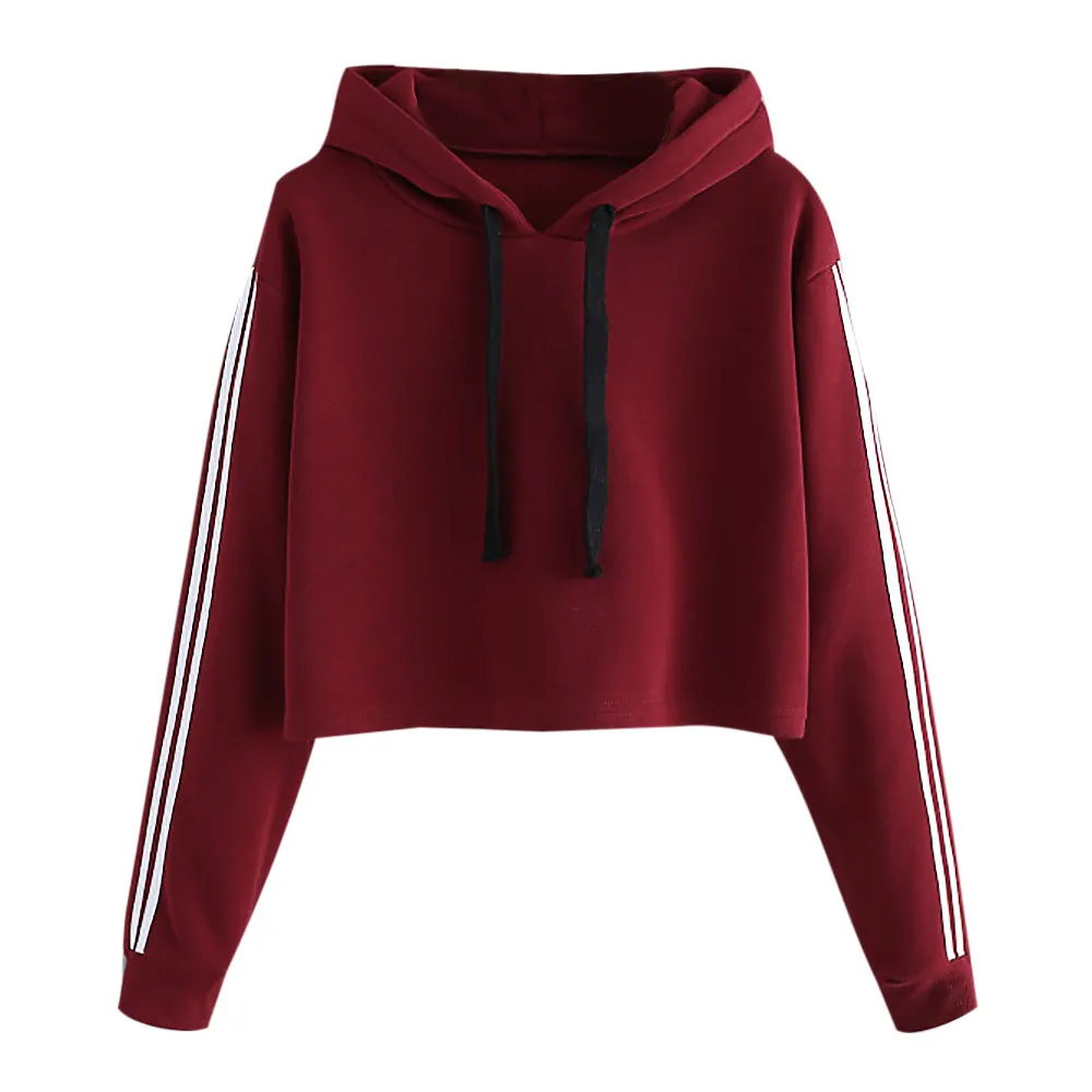 Женская Полосатая Толстовка с длинным рукавом, джемпер, пуловер с капюшоном, топы, блузка