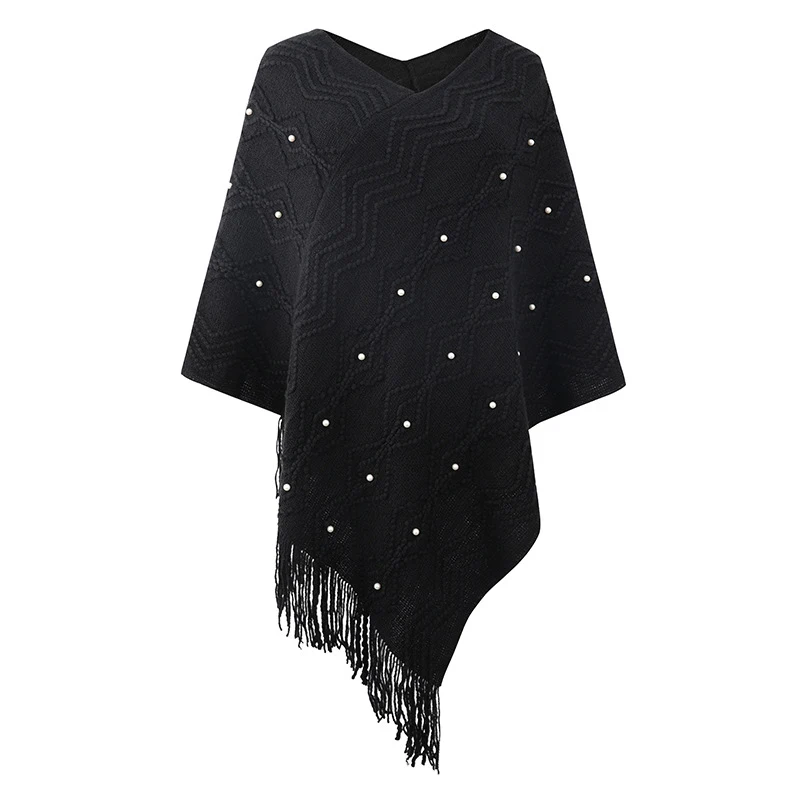 Женское Трикотажное пончо, с рукавом летучая мышь, V-образным вырезом