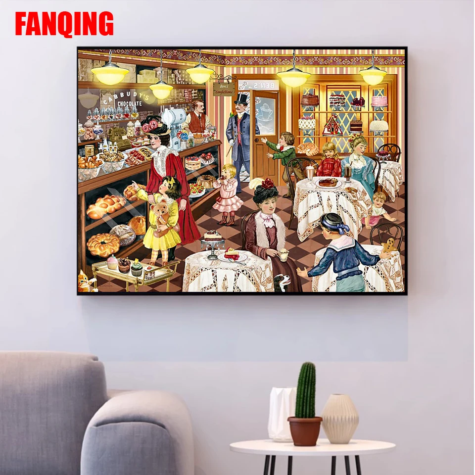Полностью квадратная/круглая дрель 5D DIY Алмазная картина "магазин тортов" 3D вышивка крестиком 5D домашний декор