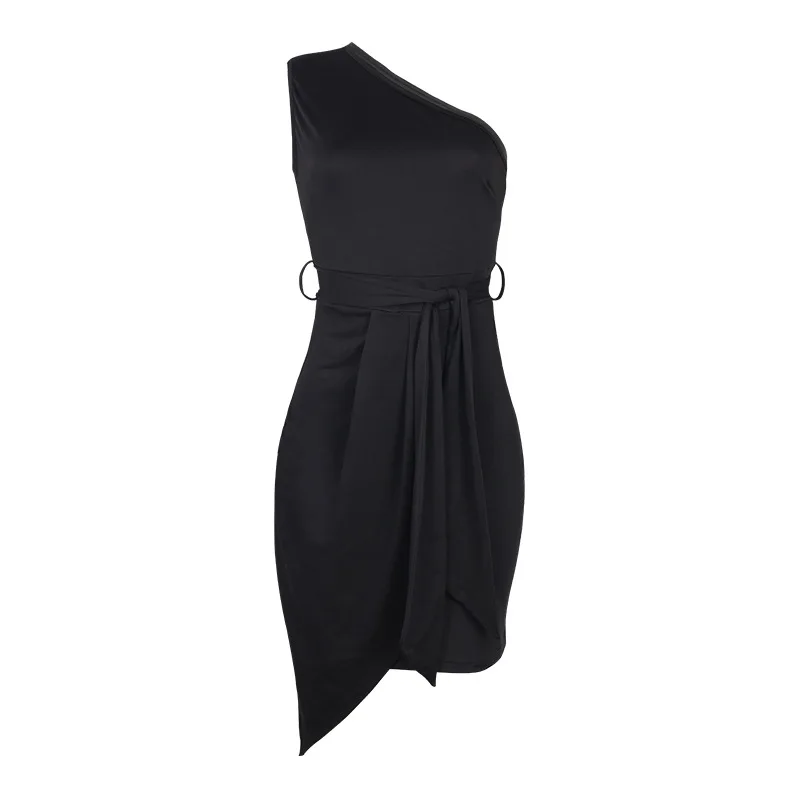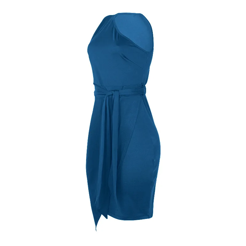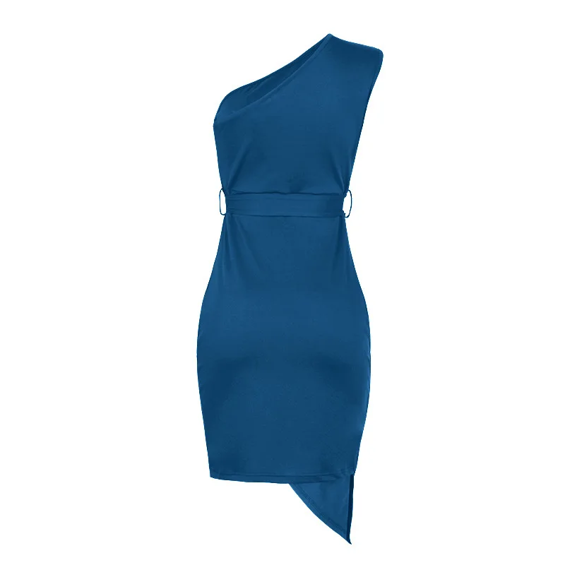 2021 элегантное темпераментное однотонное вечернее платье миди с наклонными плечами без рукавов с поясом новые модные асимметричные платья для женщин