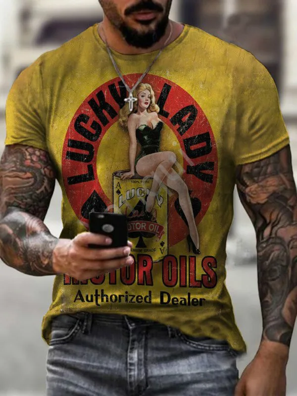 Мужская футболка с короткими рукавами и принтом в ретро-стиле, удоб...