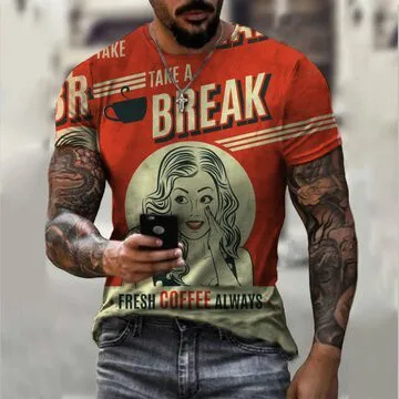 Футболка Мужскаяженская летняя с коротким рукавом и 3D-принтом