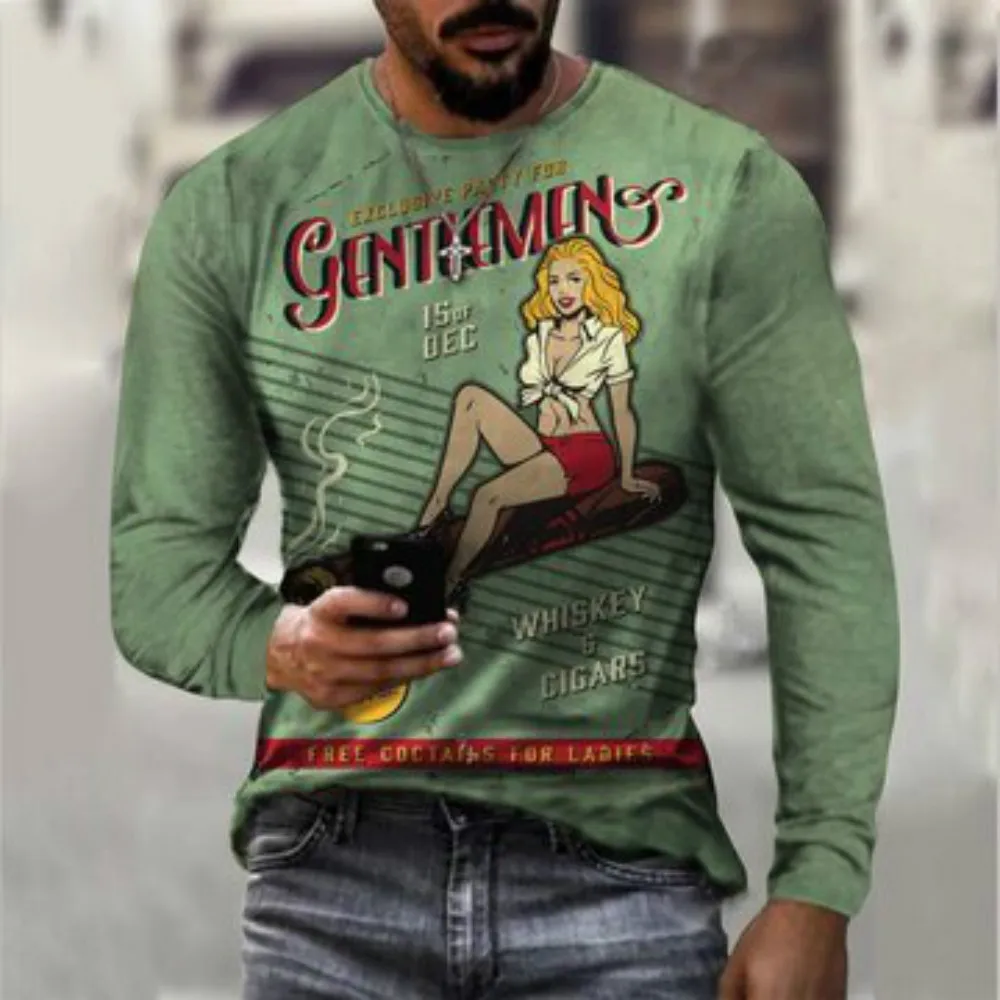 Футболка мужская с длинным рукавом, круглым вырезом и 3D-принтом