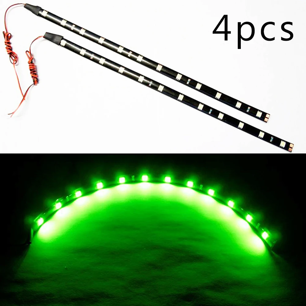 Универсальная мотоциклетная зеленая светодиодная водонепроницаемая гибкая ленсветильник для украшения салона и улицы, 30 см, 15 светодиодов, 4 шт.