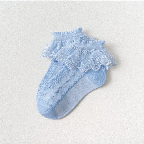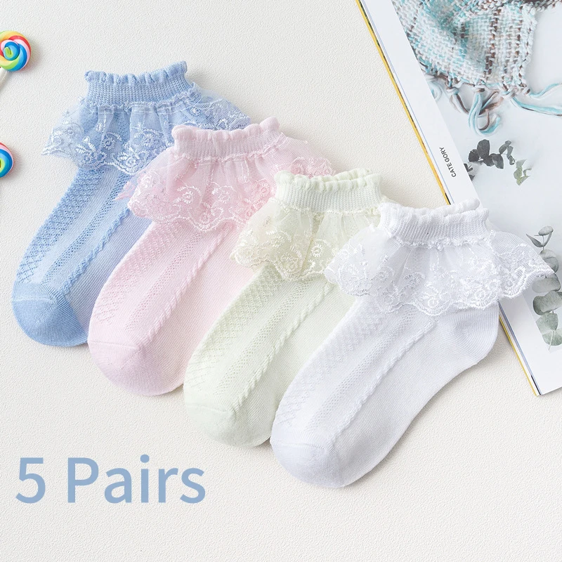 Носки детские короткие хлопковые, розовые, белые, с оборками, для девочек, носки в сеточку детские, 5 пар