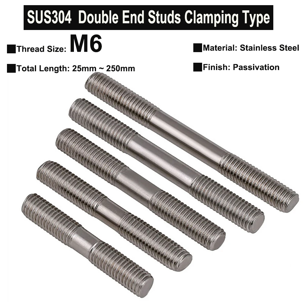 5/3/2/1 шт. M6 Нержавеющая сталь двухколесные шпильки зажима Тип «Безголовый» шпилька Резьбовая шпилька зубная палочка двойной головкой резьбой бар общая Длина: 25 мм ~ 250 мм