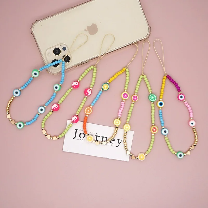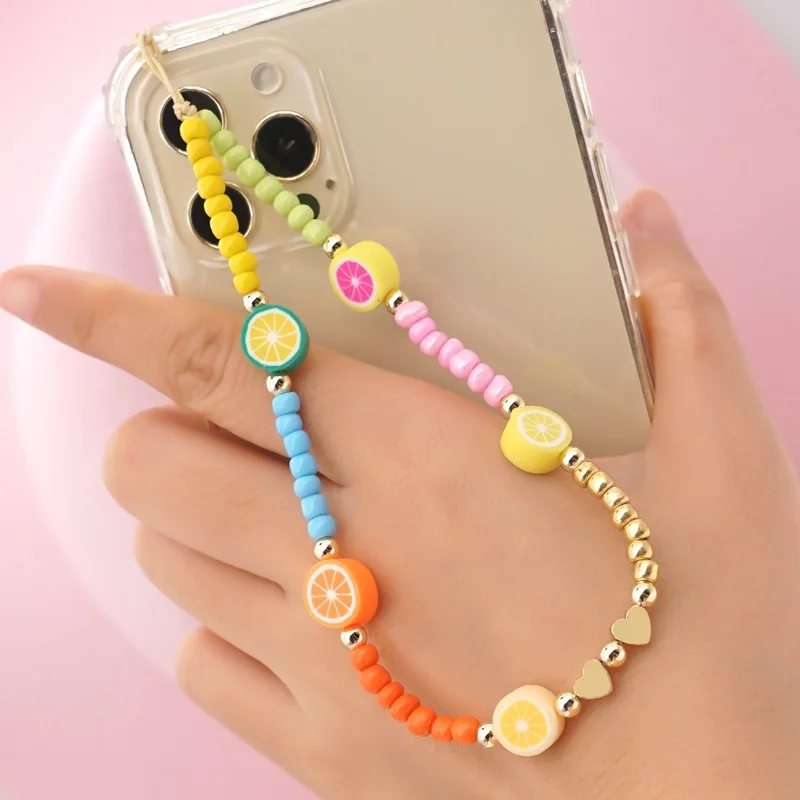 Милые милые бусины в виде фруктов, цепочка для телефона в стиле бохаймия, акриловый ремешок для сотового телефона, ремешок для защиты от потери для женщин, яркость 2K