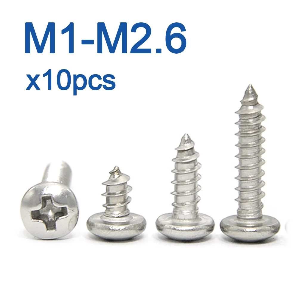 10 шт.лот крестообразный встраиваемый винт с круглой головкой M1 M1.2 M1.4 M1.5 M1.7 M1.8 M2 M2.2 M2.3 M2.5 M2.6 нержавеющая сталь дерево