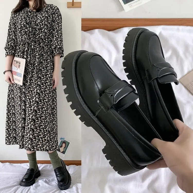 Женские однотонные черные лоферы из мягкой искусственной кожи 2022 повседневные женские слипоны на плоской подошве Удобные туфли с круглым носком на платформе женские туфли