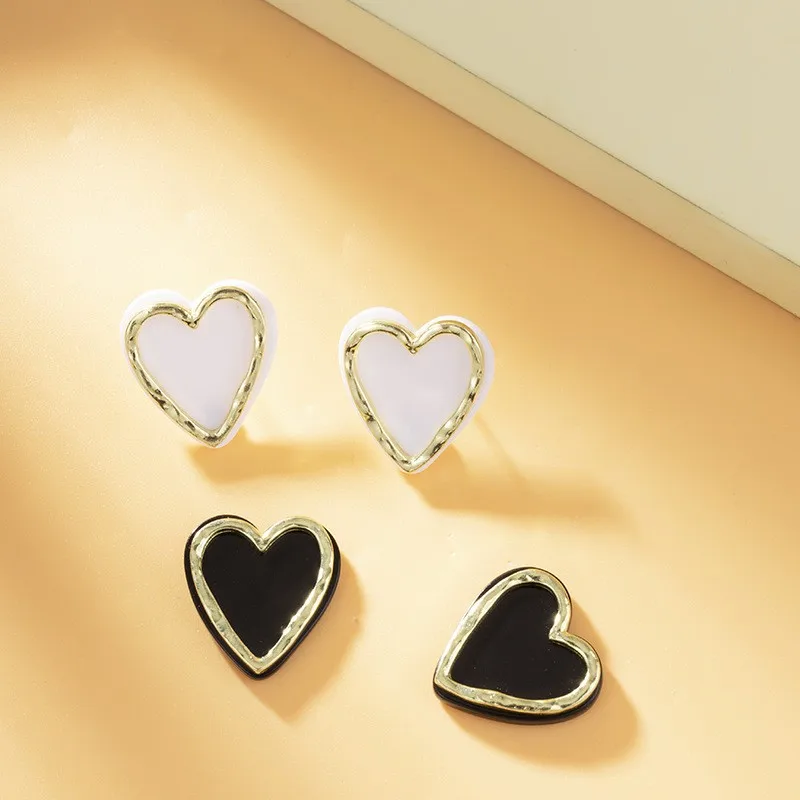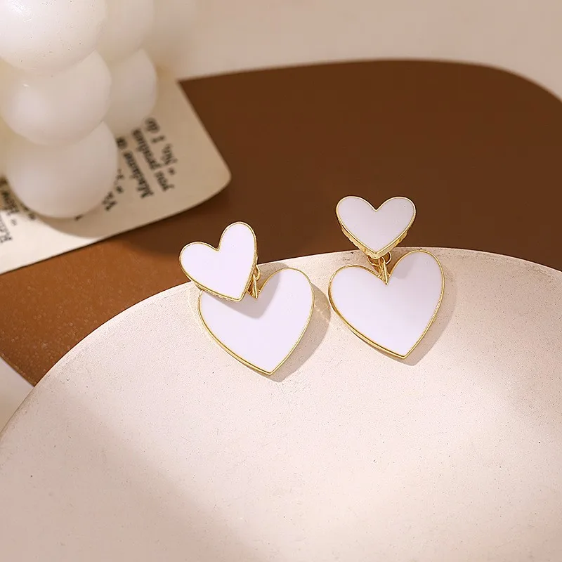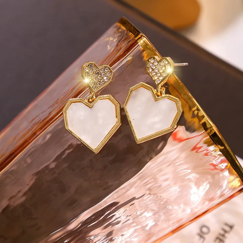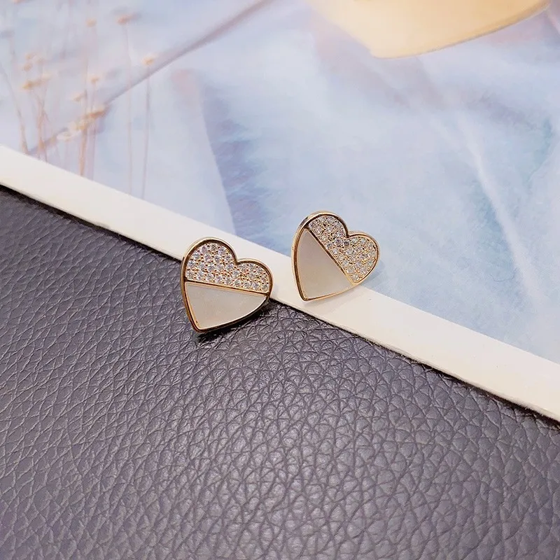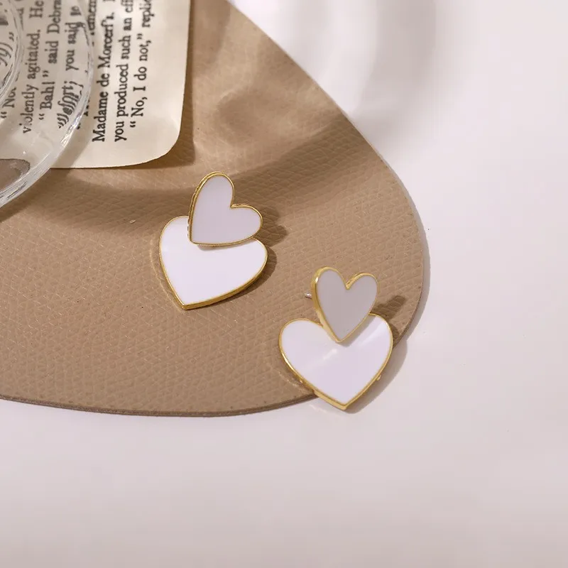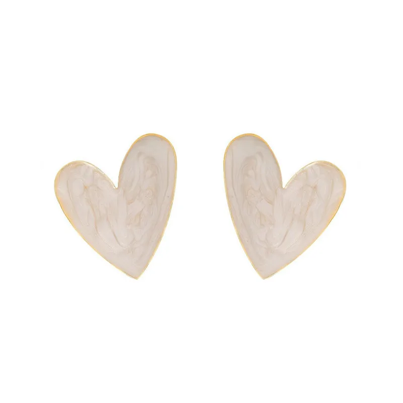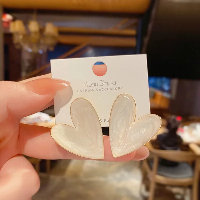 Серьги-гвоздики женские в форме сердца, белого цвета