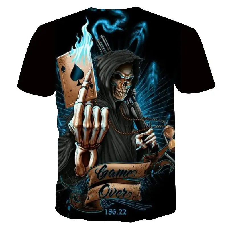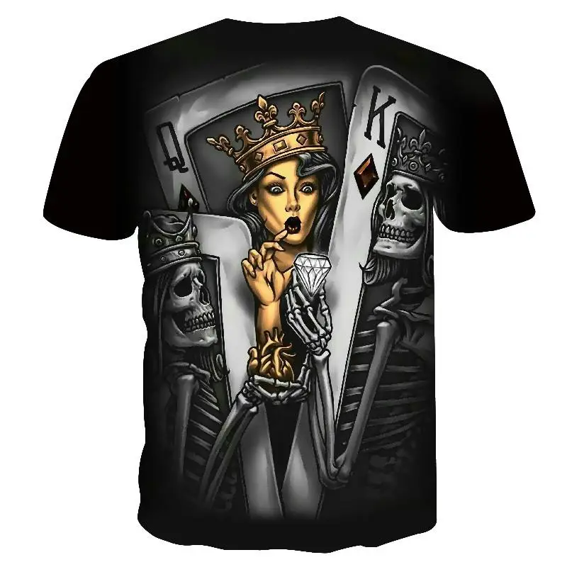 Новая повседневная футболка с 3D принтом черепа и покера, Мужская ф...