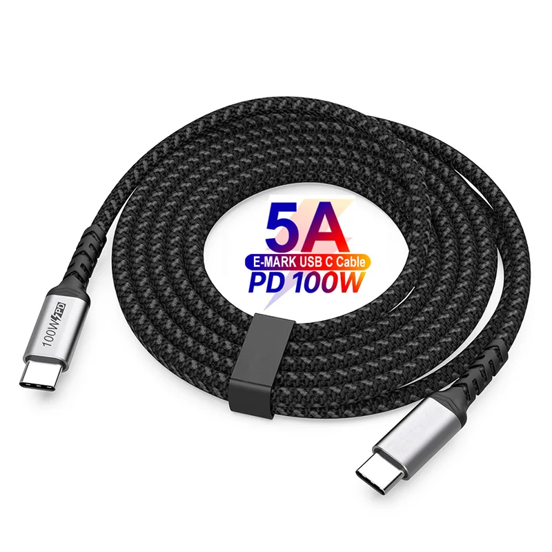 TQUQ оптовая продажа 5 шт.лот USB C кабель 100 Вт 2,0 фута, нейлоновый фотомагнитный кабель, зарядный кабель типа C, шнур для быстрой зарядки (черный)