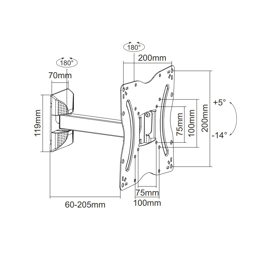 Настенный кронштейн iTECHmount LCD522 WHITE с функцией выноса, наклона и поворота рассчитан на телевизоры диагональю от 13” до 42” максимальным весом до 30 кг, позволит надежно закрепить Ваш телевизор на стене Вашего дома или офиса. Данная модель кронштейна имеет 3 степени свободы, позволяет регулировать угол наклона вашего телевизора в диапазоне 5° вверх и 14° вниз, а так же угол поворота экрана до 90° в каждую сторону. Вы так же сможете задать необходимый Вам отступ от стены в диапазоне от 60 до 205 мм. Благодаря съемной монтажной пластине, процесс крепления телевизора к стене становится максимально простым и удобным, монтаж легко может произвести всего один человек, не прибегая к посторонней помощи. Белый цвет кронштейна будет идеально сочетаться с телевизором в белом корпусе, в светлых интерьерах. Диагональ: 23" - 42"Нагрузка: до 30 кгНаклон: -14°/+5°Поворот: -90°/+90°Отступ от стены: 60 - 205 ммЦвет: белыйVESA: 75x75, 100x100, 200x100, 200x200 мм