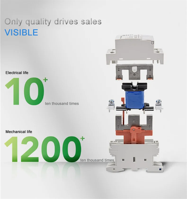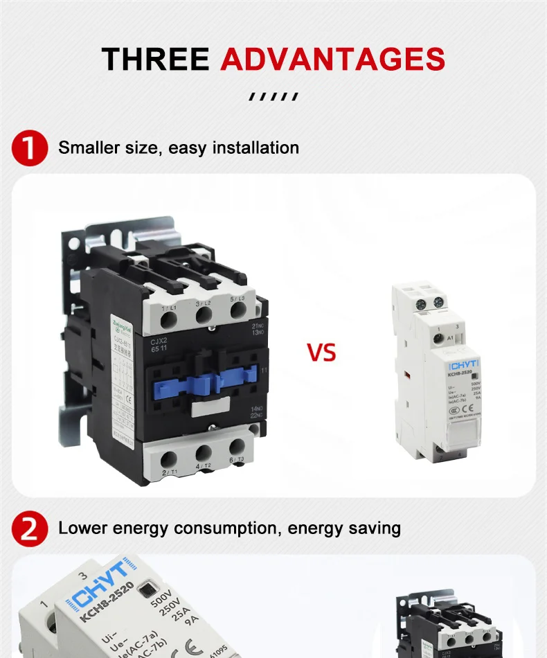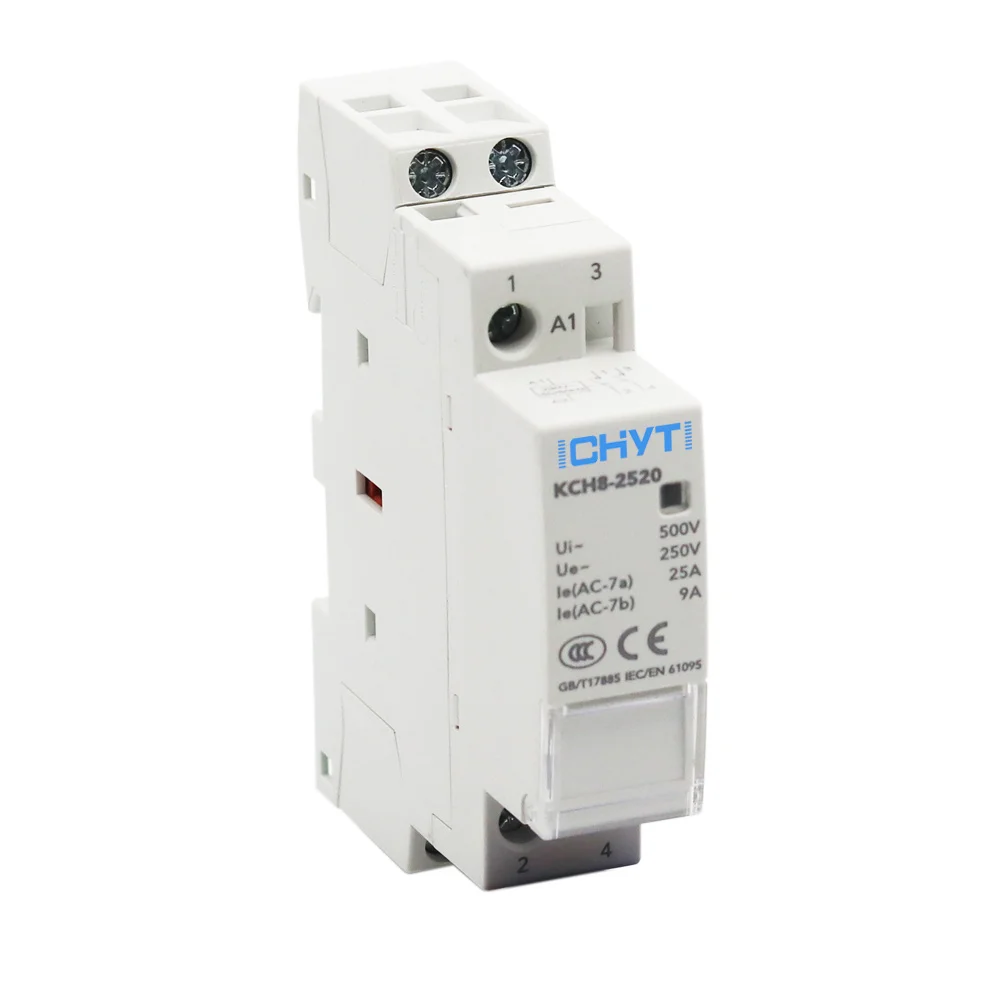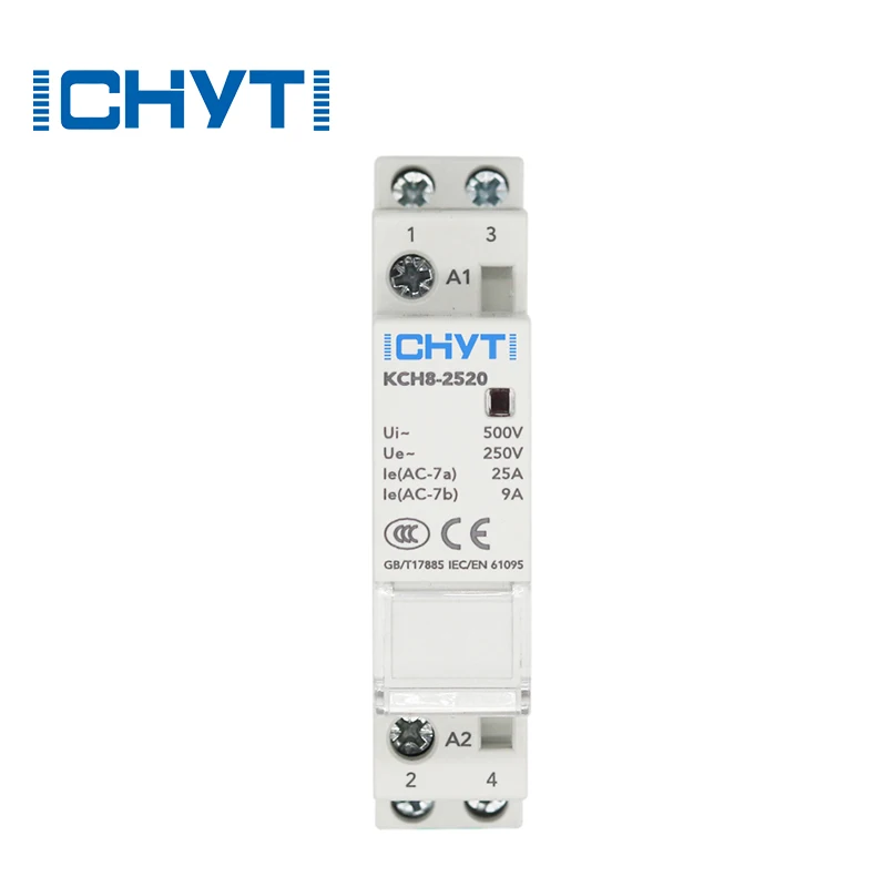 AC контактор для дома-это в основном предназначены для переменного тока 50 Гц или 60 Гц цепей с 230V. Номинальное рабочее напряжение при AC-7a использовании, Номинальное рабочее напряжение до 230 В, Номинальный рабочий ток до 25 А, Номинальное рабочее напряжение в использовании AC-7b, номинальный ток до 10 А. Использование в разрыве мощности ниже 6kA цепи. Для расстояния подключения или прерывания цепи.Применение: для дома, квартиры, отеля, автоматическое отключение или подключение питания.Нормальные условия работы и установки:1. Температура окружающей среды: от-5 °C до + 40 °C, средняя температура не более + 35 °C в течение 24 часов.2. Высота: не более 2000 м.3. Атмосферные условия: относительная влажность места установки должна быть не более 50%, когда максимальная температура + 40 °C: Если при более низкой температуре допускается более высокая относительная влажность. Среднемесячная минимальная температура в Самый влажный месяц не должна превышать + 25 °C и среднемесячная максимальная относительная влажность в этом месяце не более 90%. Кроме того, следует учитывать росы на поверхности продуктов, вызванные изменением температуры.4. Класс загрязнения: класс 2.5. Условия установки: класс II.Инструкция по применению1. Проверьте, соответствует ли контактор объему применения и условиям работы перед установкой2. Во время установки выньте компонент остановки движения и поставьте контактор на безопасную орбиту, а затем Поднимите компонент остановки движения, чтобы зафиксировать контактор на безопасной орбите, чтобы избежать ослабления и падения компонент остановки движения, если вы хотите удалить контактор.ПредостережениеA) убедитесь в правильном режиме подключенияB). Закрутите винт во время соединения