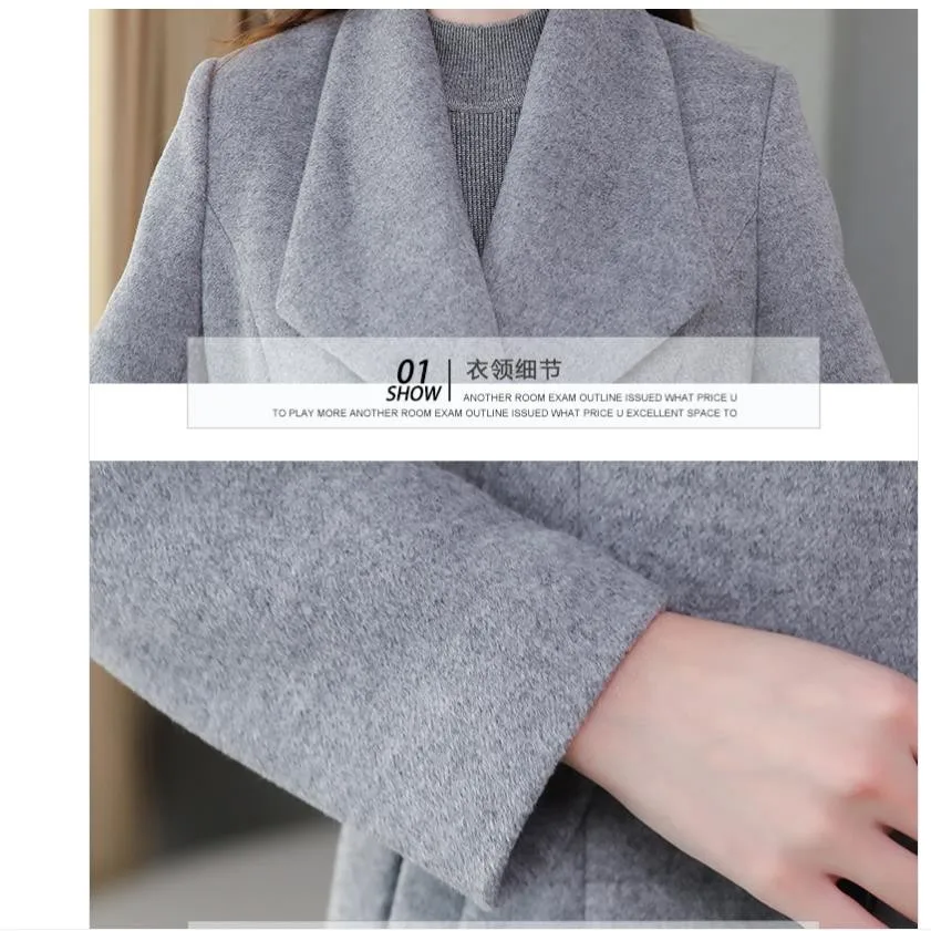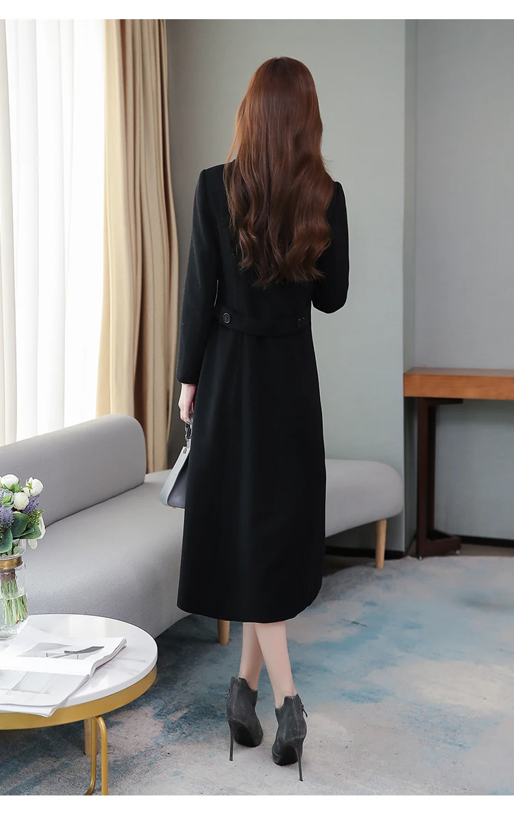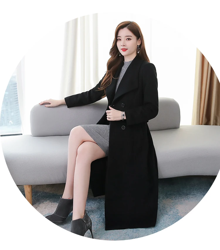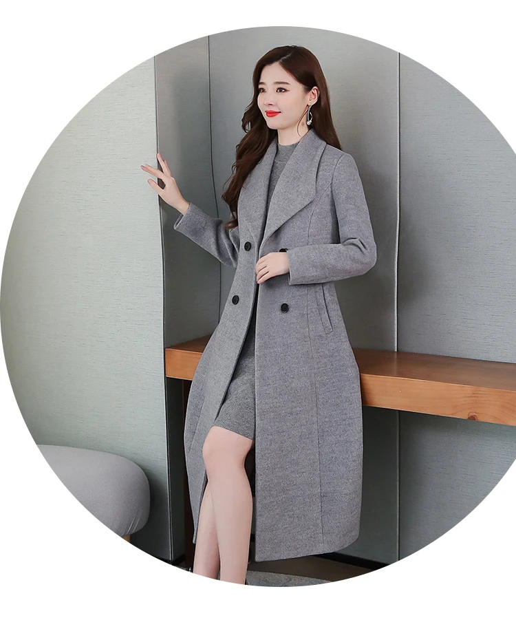 Женское длинное шерстяное пальто, двубортное кашемировое пальто серого и черного цвета с длинным рукавом, большие размеры 3xl, Осень-зима