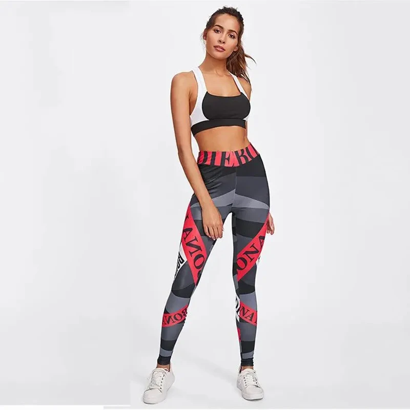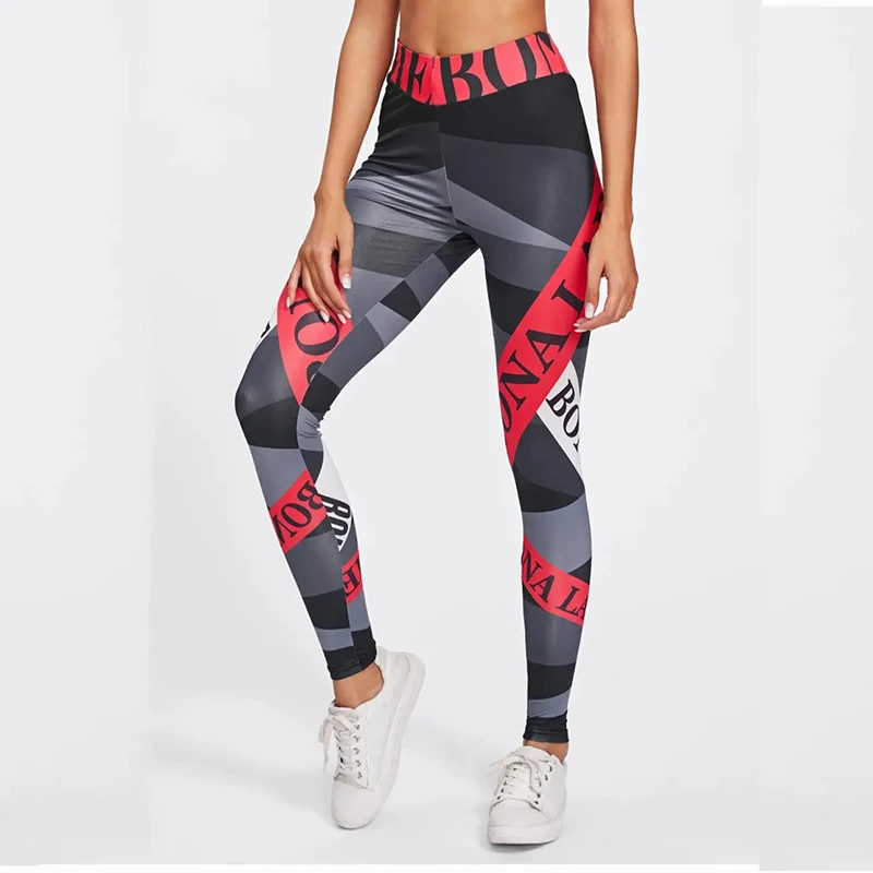 Женские леггинсы для фитнеса, эластичные облегающие леггинсы с надп...