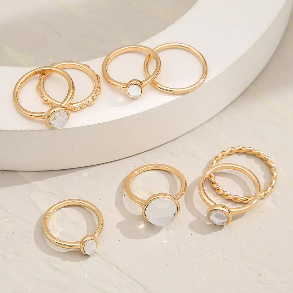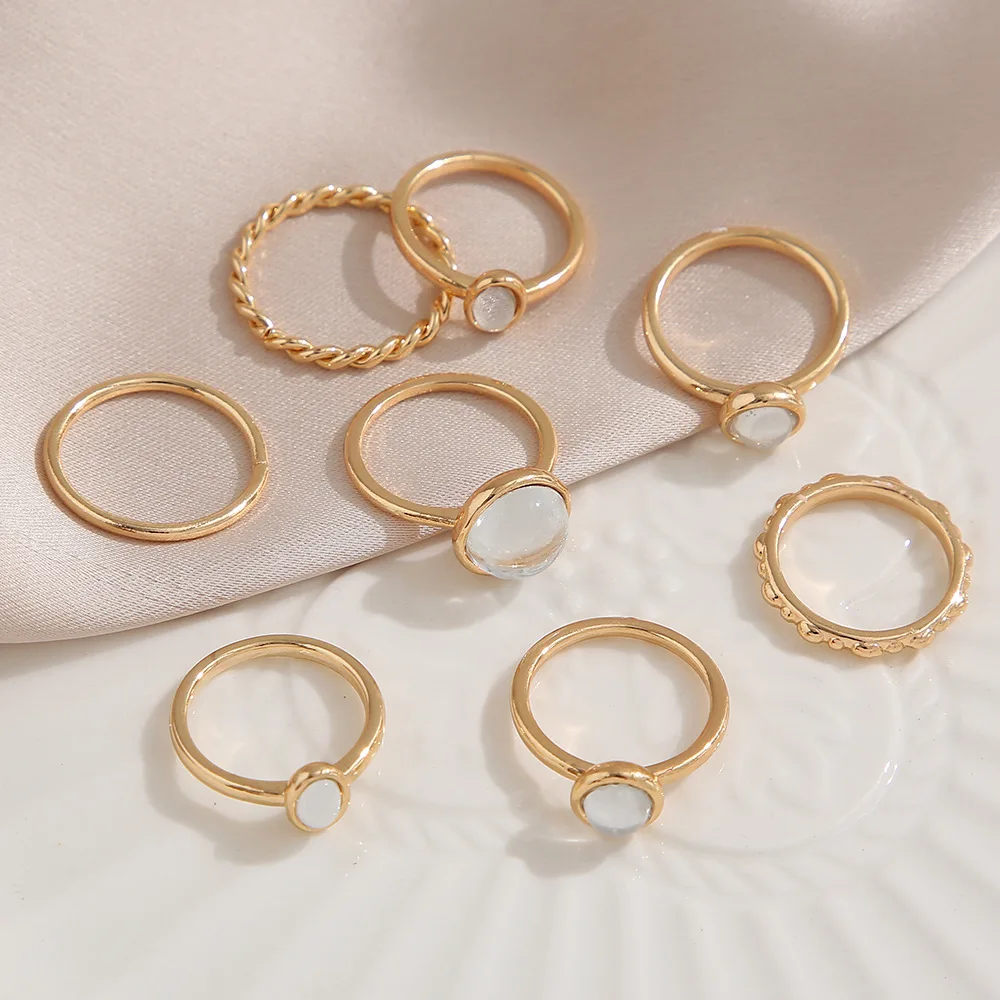 Кольцо женское, 8 шт.компл., винтажное, разноцветное, золотистое, с...