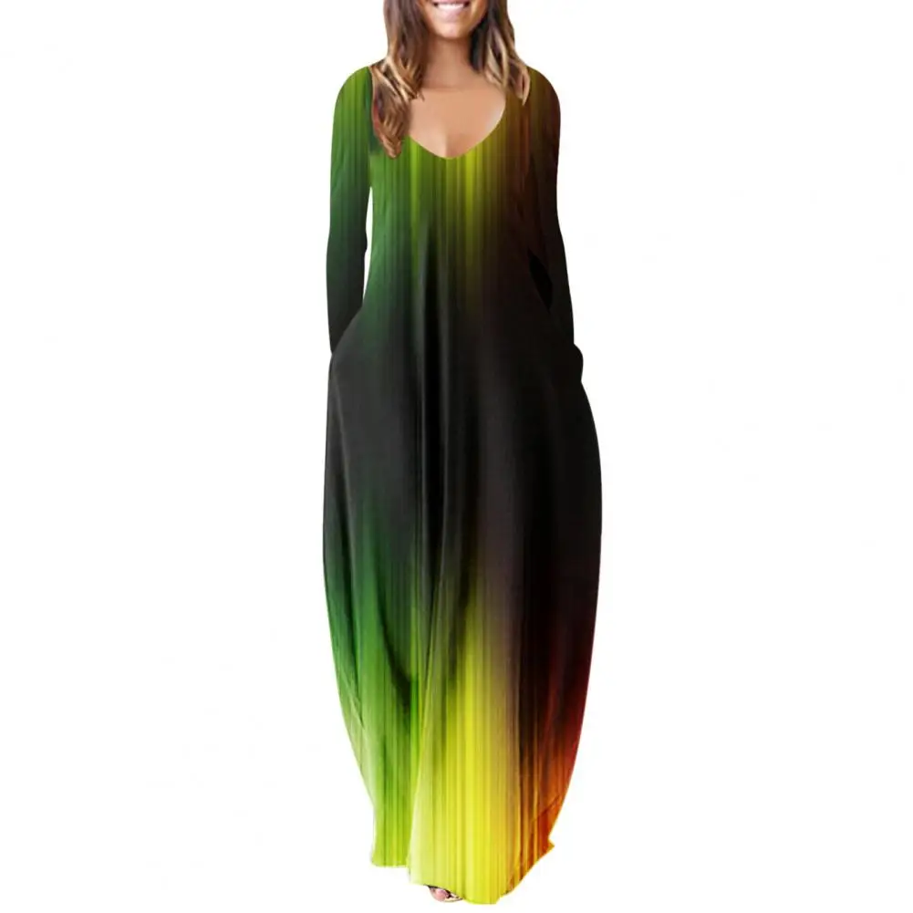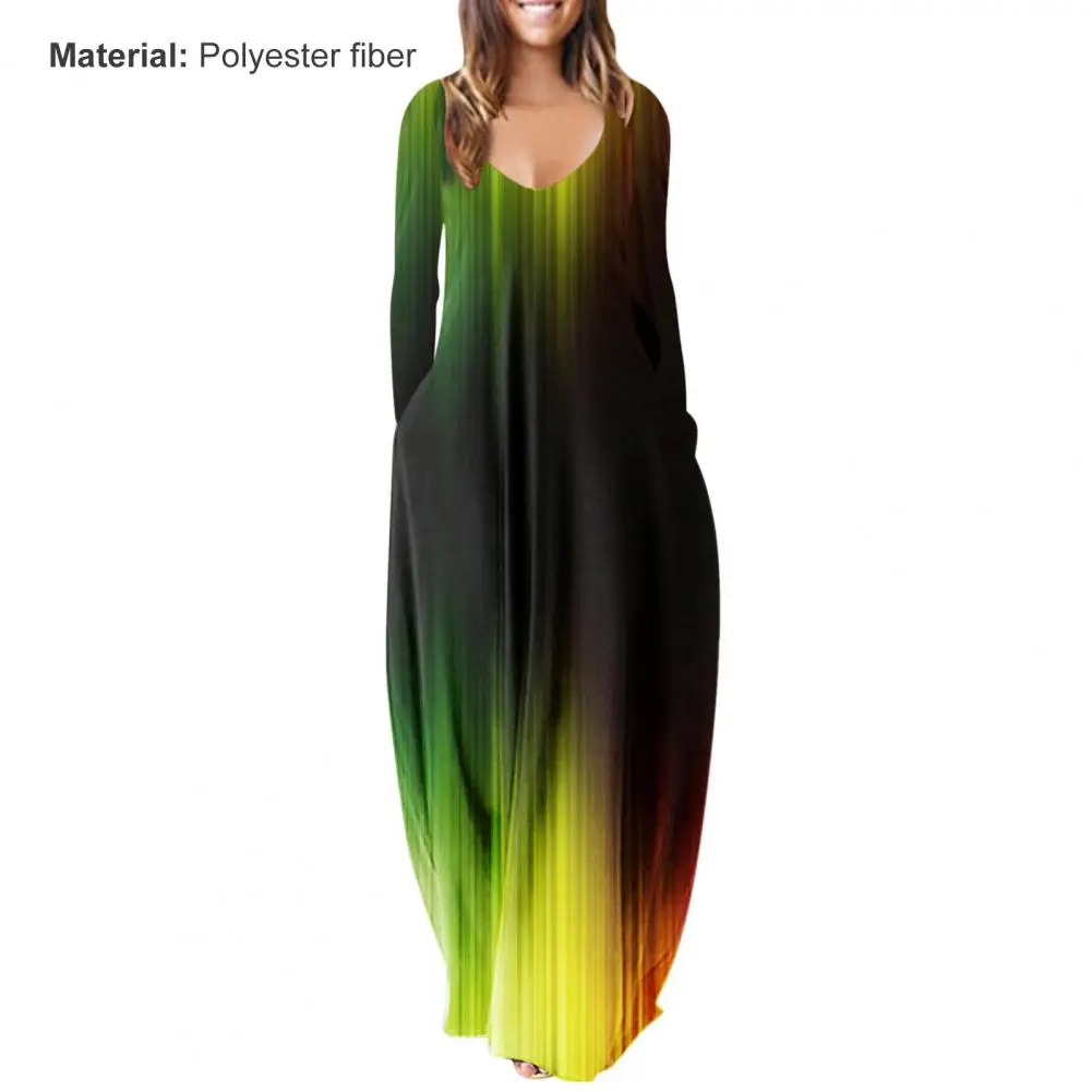 Характеристики: Свободное платье с контрастным цветным принтом, очень красивое и модное, имеет яркий цвет, который очень привлекательный. Дизайнерское платье с v-образным вырезом придает вашему лицу стройность и привлекательность. Свободное платье изготовлено из высококачественного полиэфирного материала, оно мягкое, дышащее и удобное в носке. Есть пять размеров: S, M, L, XL, 2XL. Макси-платье подходит для вечерние, путешествия, отдых, пляж, отдыха и т. д. Наименование товара: платье Материал: полиэстер Стиль: Модный Пол: женщин Тип Посадки: свободный Тип воротника: v-образный вырез Длина рукава: длинный рукав Длина платья: Макси-платье Сезон: Осень Особенности: мягкий, с принтом, дышащий Информация о размере: [Наш Размер S] Длина: 141 см/55,5 ", обхват груди: 90 см/35,4", рукав: 61 см/24 "(прибл.) [Наш Размер M] Длина: 142 см/55,9 ", обхват груди: 95 см/37,4", длина рукава: 62 см/24,4 "(прибл.) [Наш Размер L] Длина: 143 см/56,3 ", обхват груди: 100 см/39,4", длина рукава: 63 см/24,8 "(прибл.) [Наш Размер XL] Длина: 144 см/56,7 ", обхват груди: 105 см/41,3", длина рукава: 64 см/25,2 "(прибл.) [Наш Размер 2XL] Длина: 145 см/57,1 ", обхват груди: 110 см/43,3", длина рукава: 65 см/25,6 "(прибл.) Примечания: Пожалуйста, обратитесь к нашей таблице размеров и выберите правильный размер. Благодаря светильник и экрана Цвет Товара может быть s светильник ly отличается из-за характеристик монитора компьютера. Посылка включает в себя: 1 платье