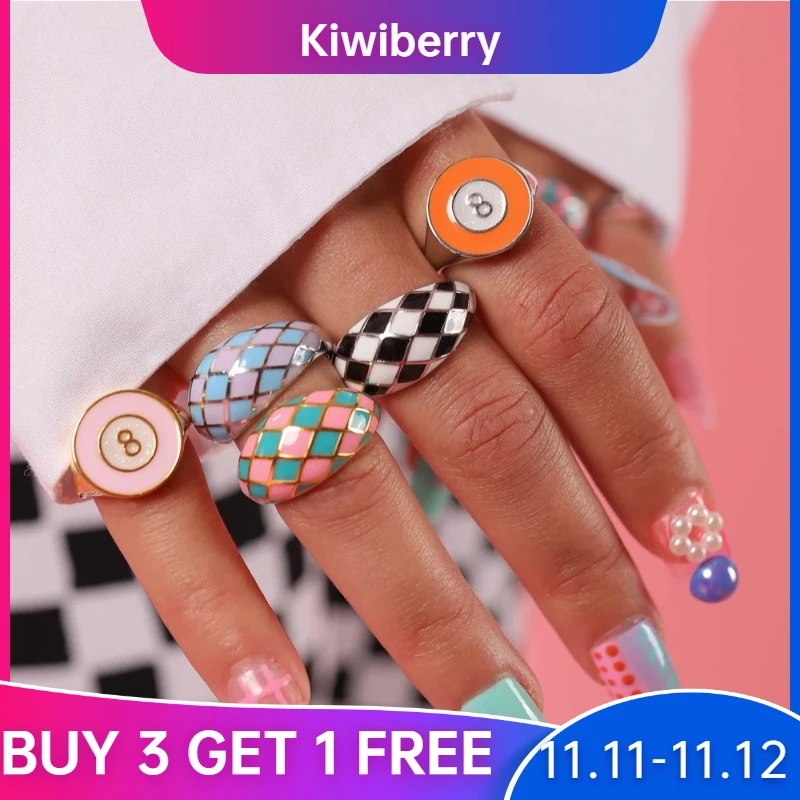 Кольцо Kiwiberry для женщин, с рисунком из мультфильма, капает масло, сердце, ветер, эмаль, разноцветное сердце, облако грибовидной формы, акриловые кольца одного размера