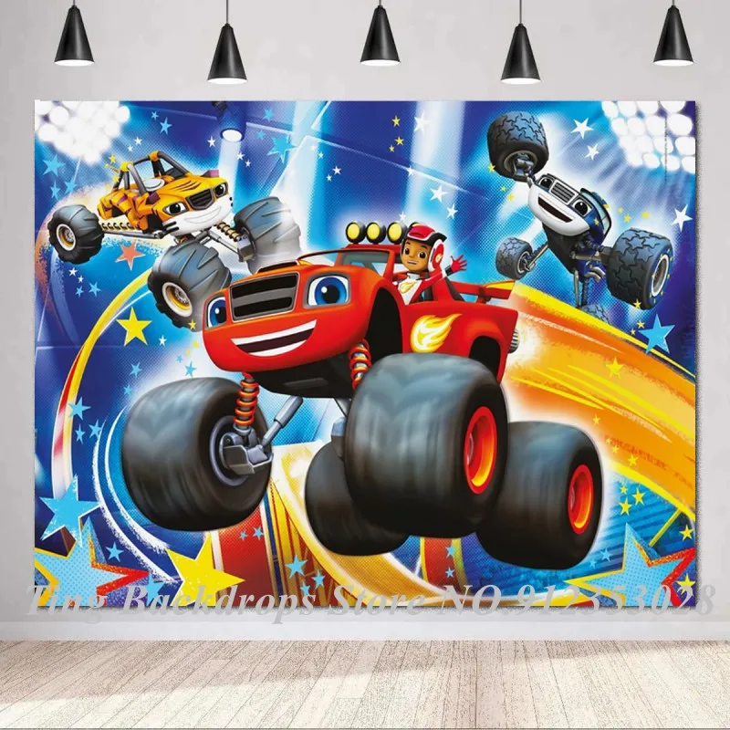 Монстр-Трак гоночная игра Вечерние Декорации игрушки таблицы на день рождения Большой колесо автомобили мультяшный фон для фотосъемки