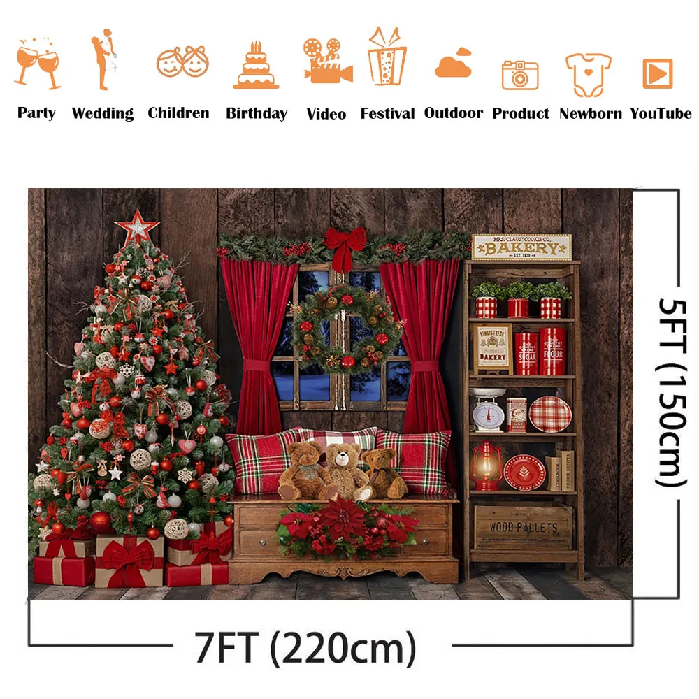 Фон для фотосъемки рождественские окна игрушечный фон с медведем шкаф Рождественская елка подарочные коробки деревянная стена Фотофон реквизит