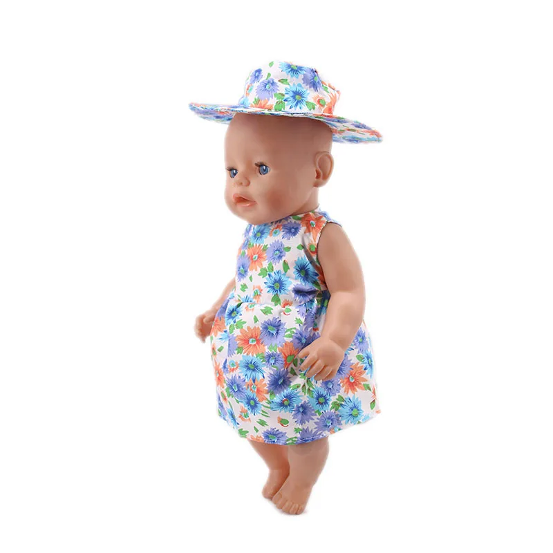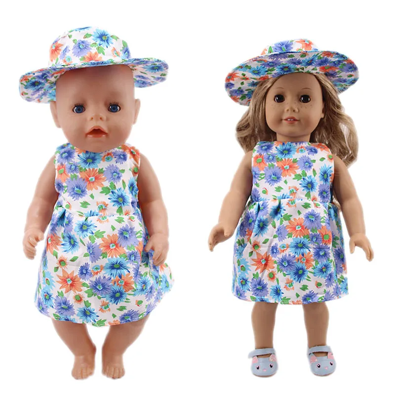 Новое платье с цветочным рисунком + шапка, костюм для 18-дюймовых американских кукол и 43 см, аксессуары для кукол новорожденных