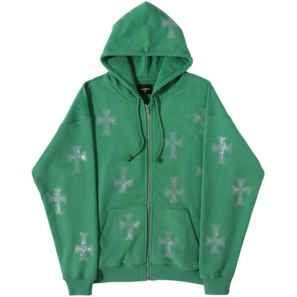 Стразы, Готическая уличная одежда, зеленая толстовка с капюшоном, Y...