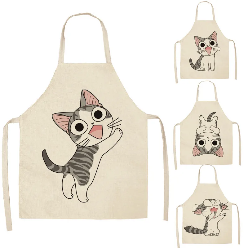 1 шт. Кухонный Фартук с животными, милые Мультяшные Коты, хлопковые льняные фартуки без рукавов для женщин, инструменты для уборки дома icon star icon star icon star icon star icon star