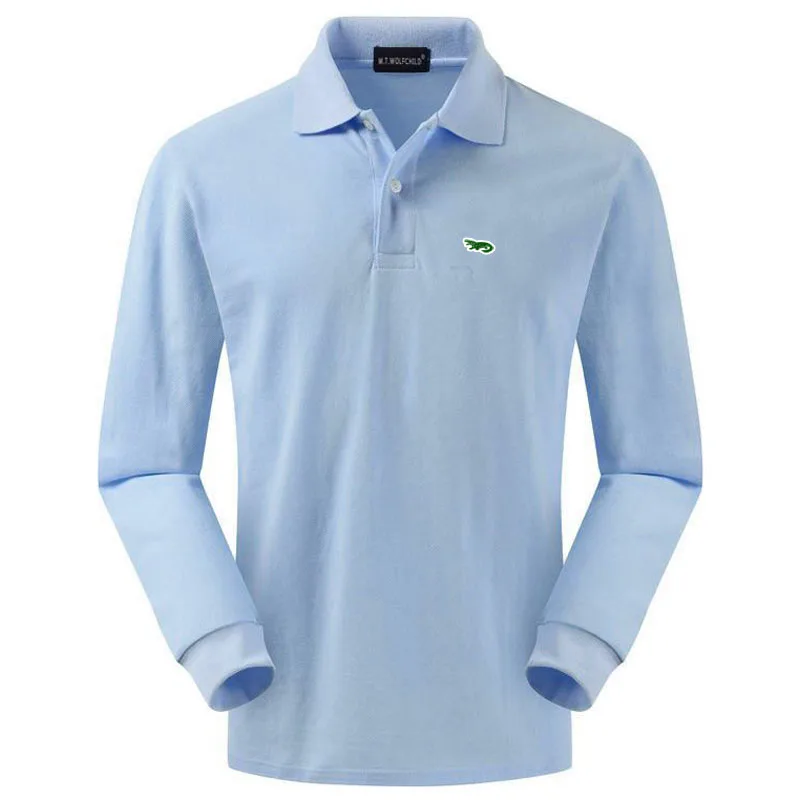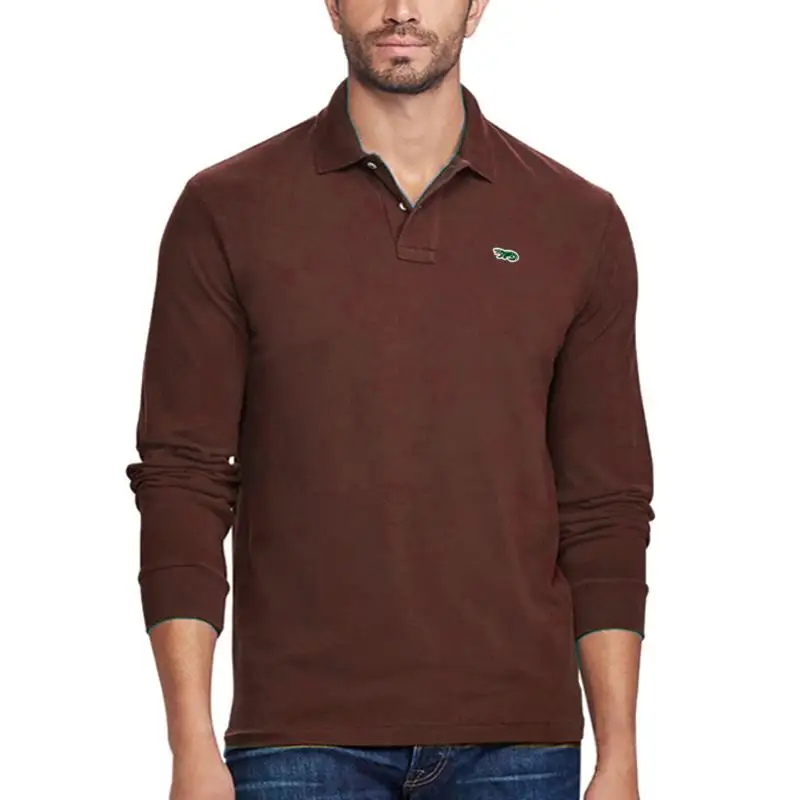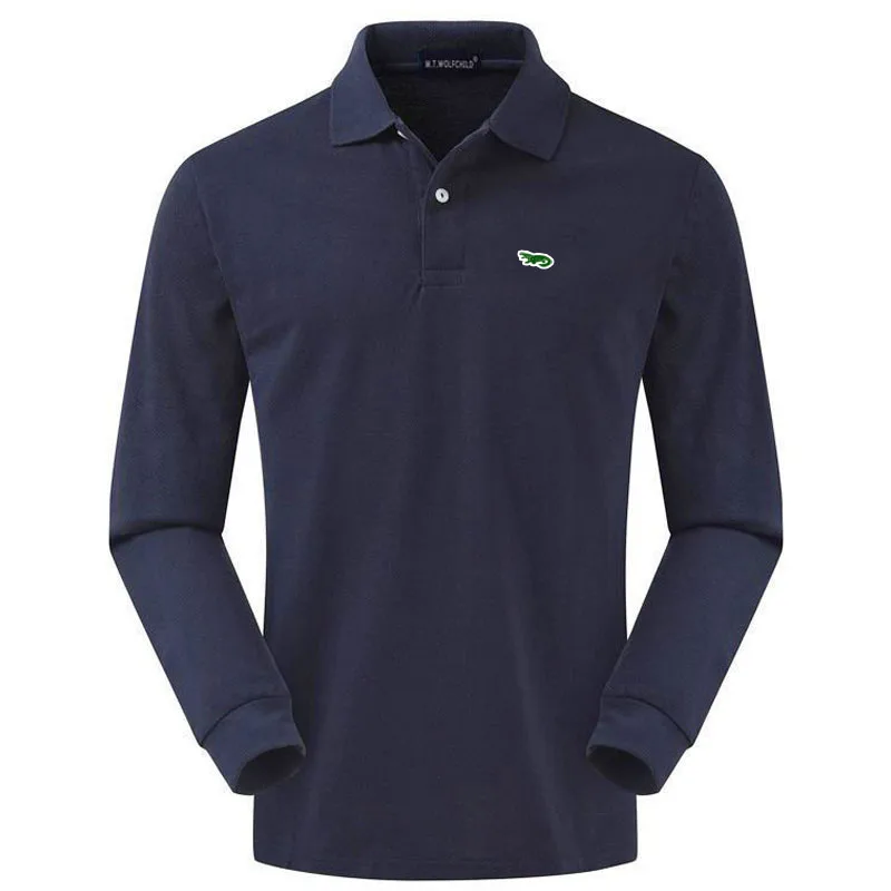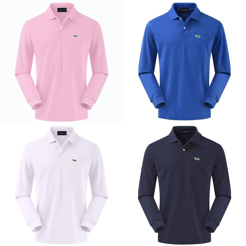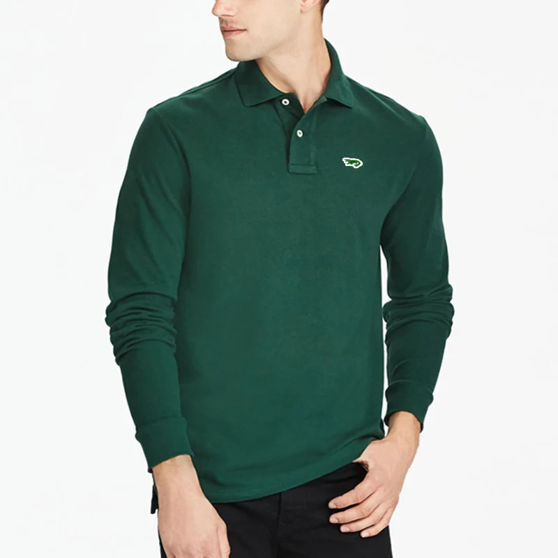 Мужская рубашка-поло с длинным рукавом, из натурального хлопка