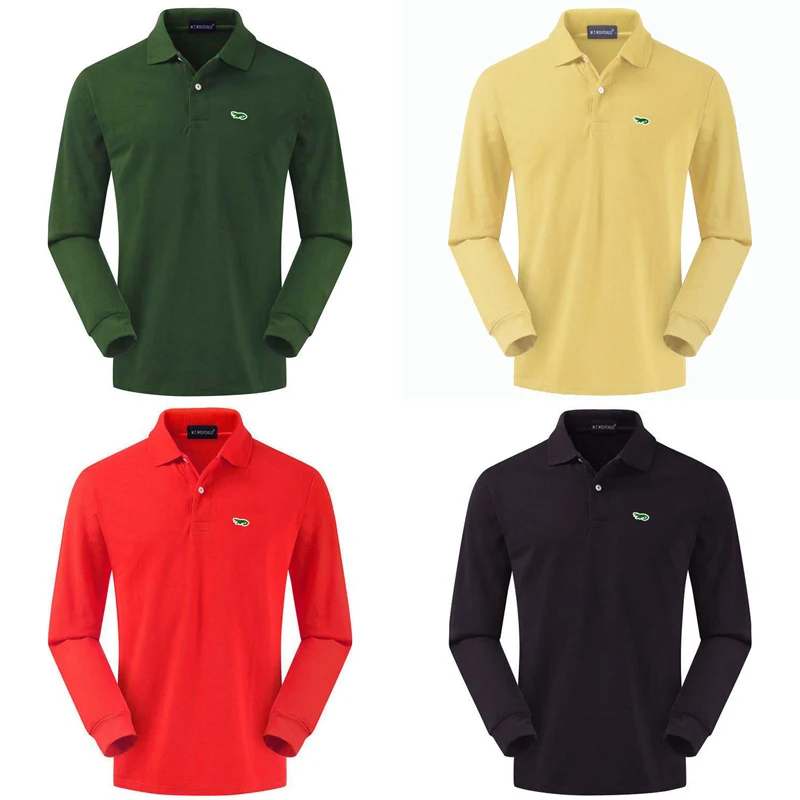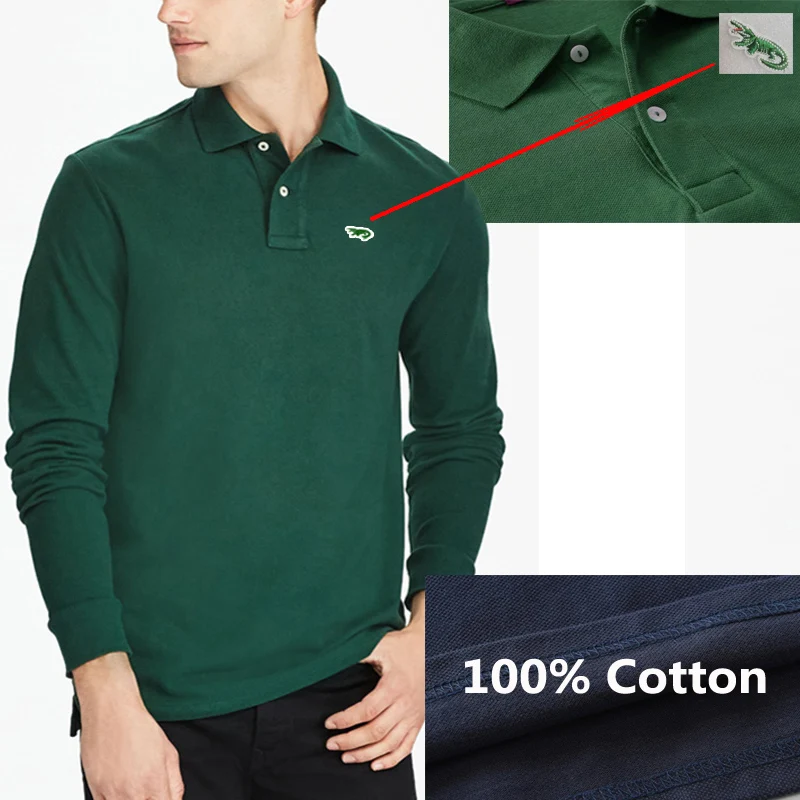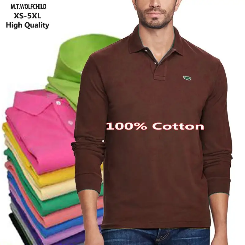 Мужская Осенняя рубашка-поло, из XS-4XL хлопка, с длинным рукавом, ...
