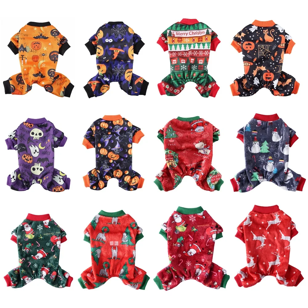 Пижамы для собак на Хэллоуин, зимняя одежда для домашних животных, Рождественская Пижама с котом для маленьких собак, комбинезоны, пальто, теплая одежда для сна, чихуахуа, померани