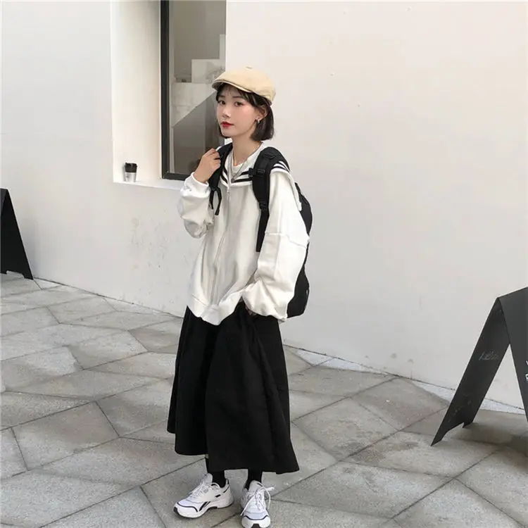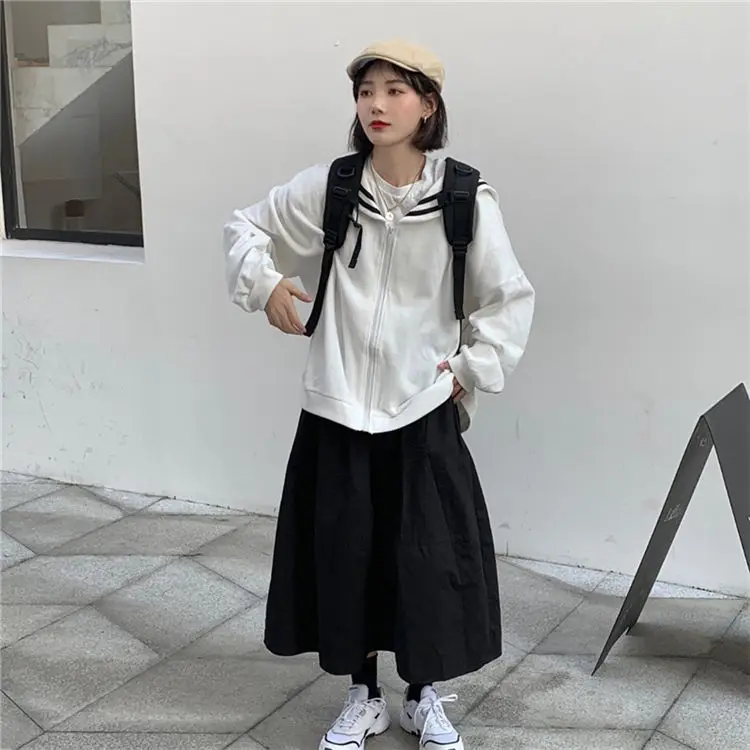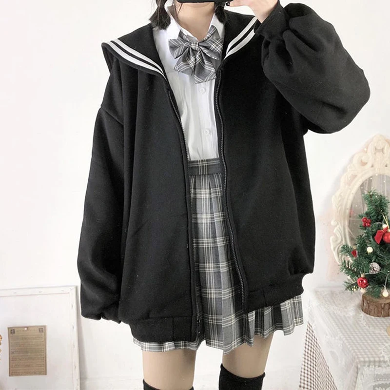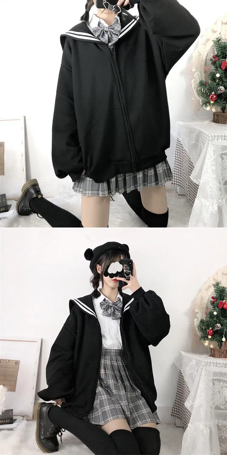 Японская кавайная толстовка с матросским воротником на молнии, Толстовка Harajuku Y2k, милые топы с длинным рукавом для подростков Jk, розовый, темно-синий, мягкая, для девушек, Kpop