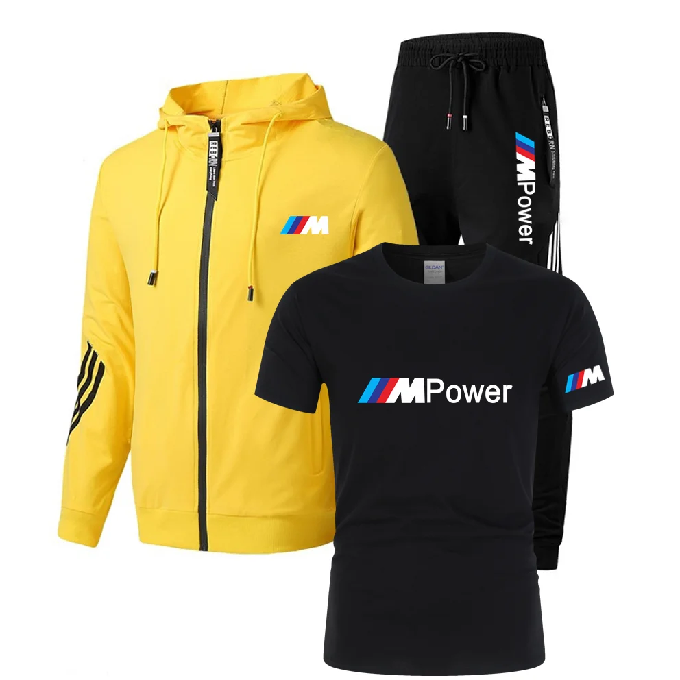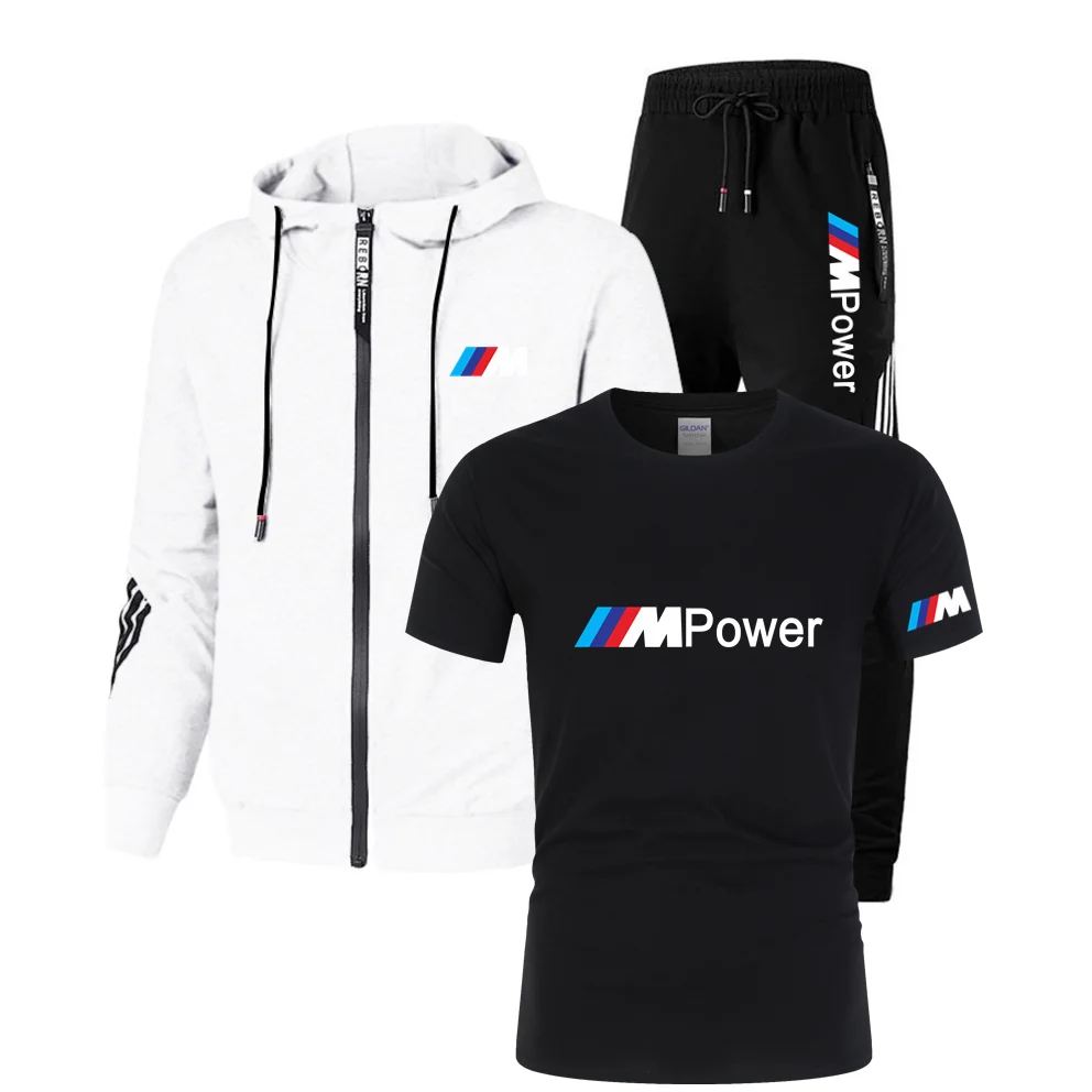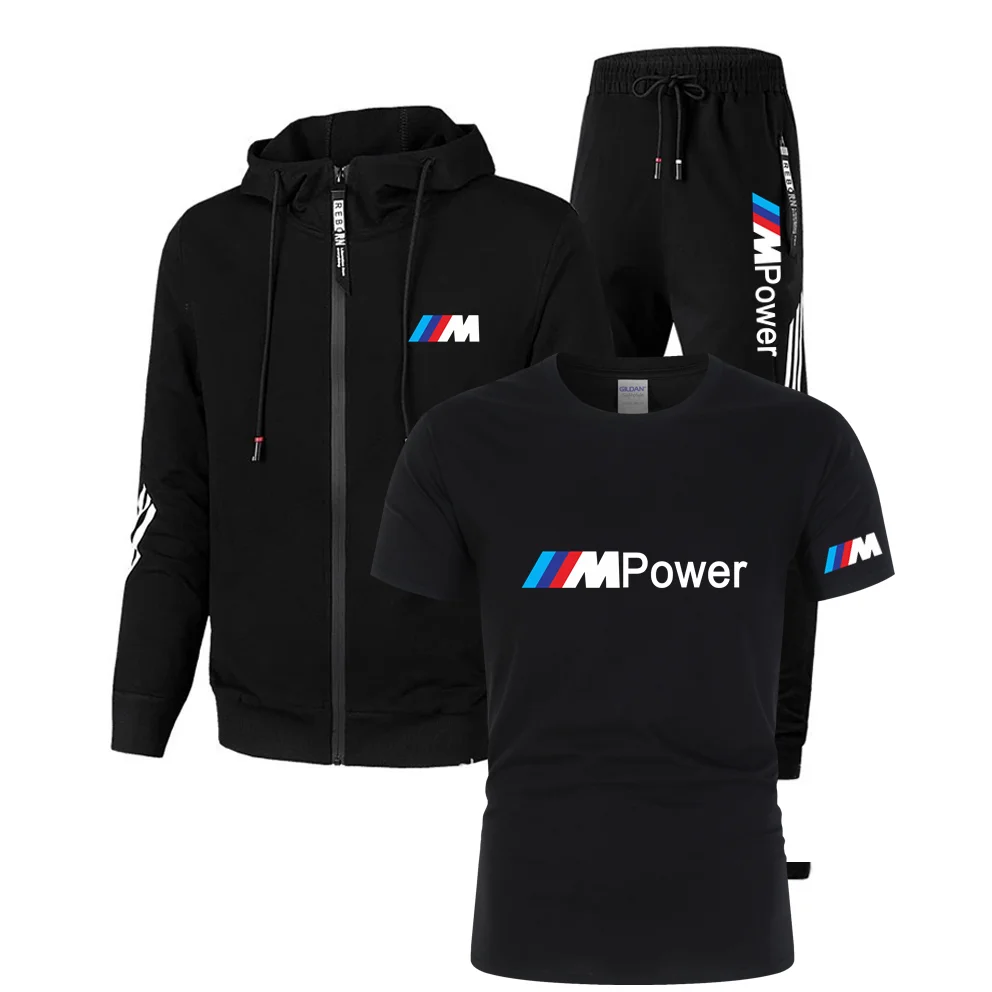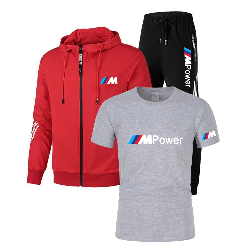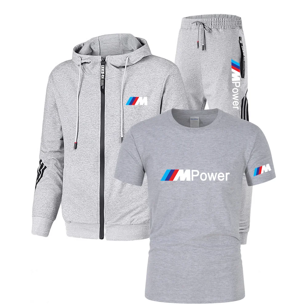 Новинка 2021, мужская футбольная форма Bmw, спортивный костюм с капюшоном, Весенняя тонкая куртка на молнии + брюки, спортивная одежда из трех предметов для спортзала и бега