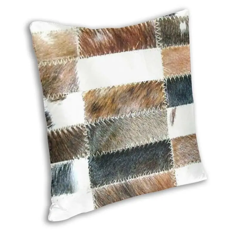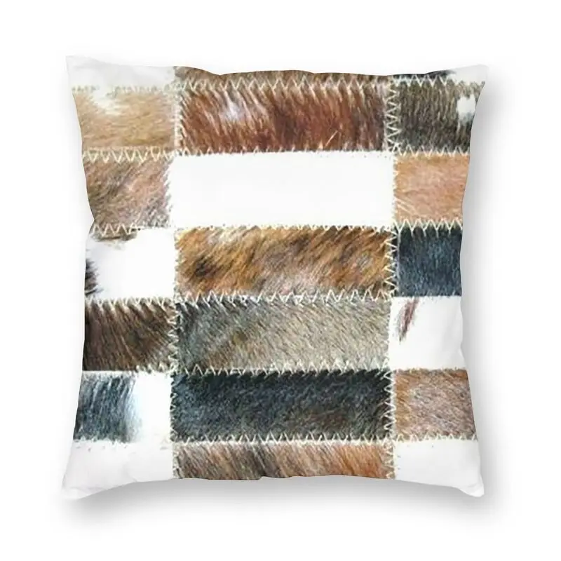 Роскошный чехол для подушки из воловьей кожи с лоскутной текстурой для дивана бархатный кожаный чехол с животным мехом декоративный чехол для подушки