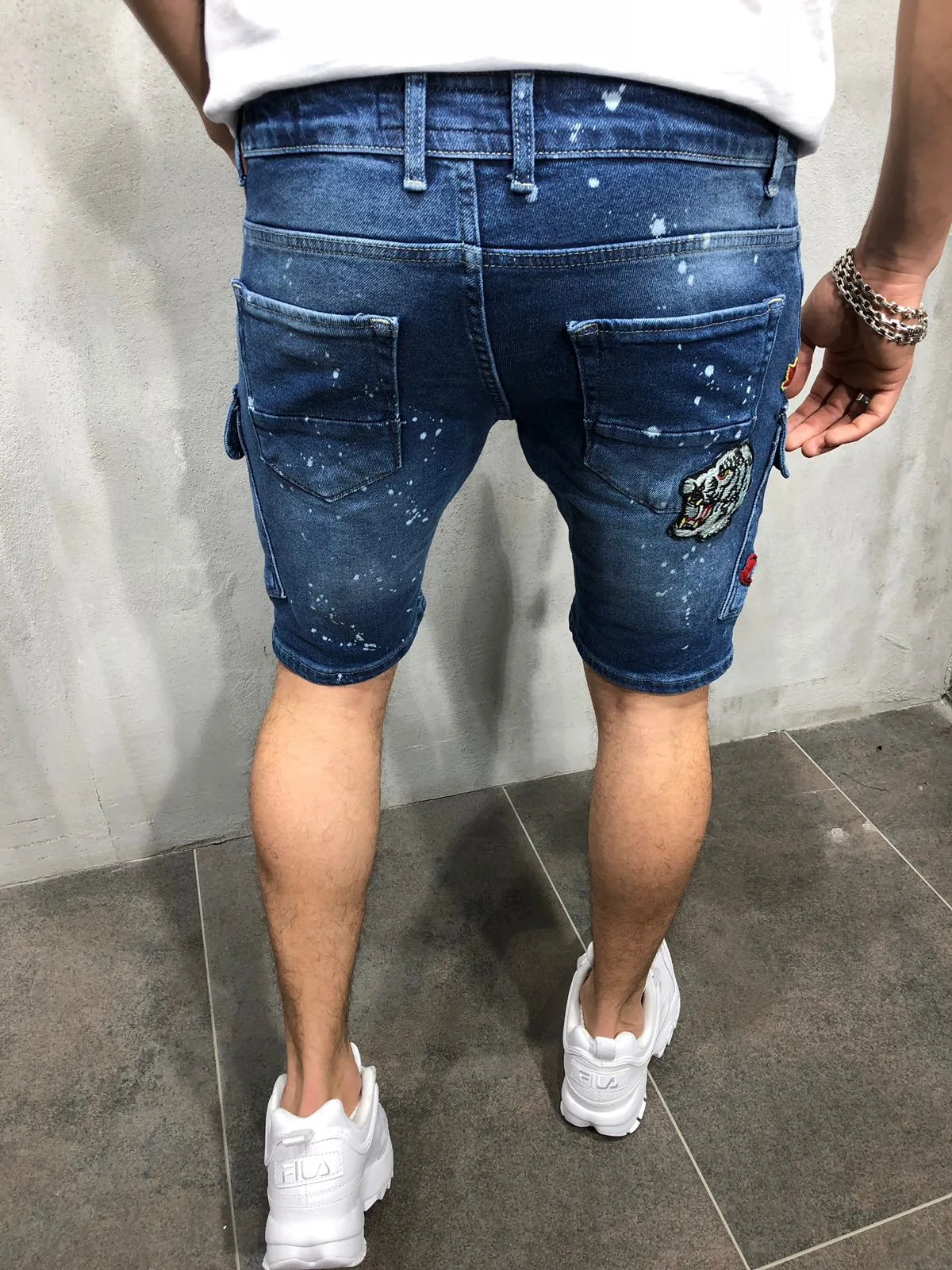 Мужские джинсовые шорты, рваные, с вышивкой, с карманами, в стиле хип-хоп, для пробежек, 5 центов, прямые, зауженные, в белый горошек, летние