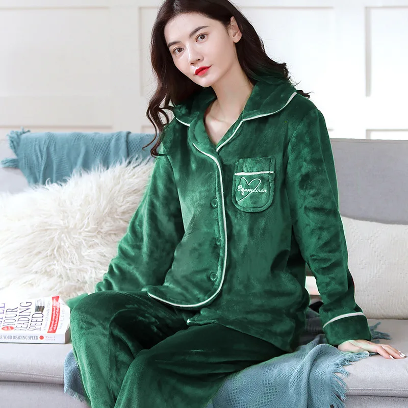Новинка 2021, зимняя Рождественская флисовая Фланелевая пижама, Женский Теплый утепленный бархатный пижамный комплект, одежда для сна из двух предметов, Пижама