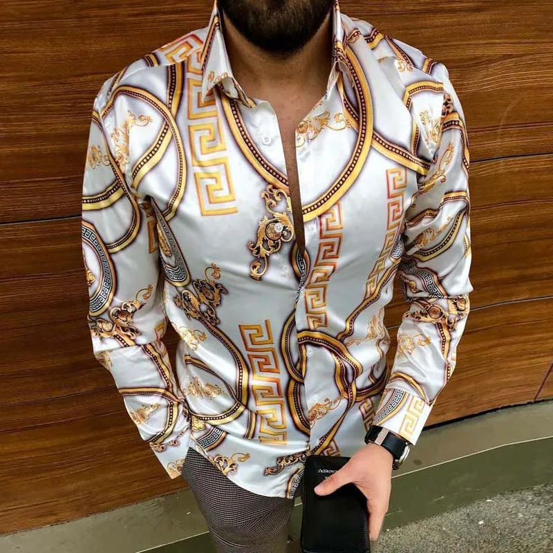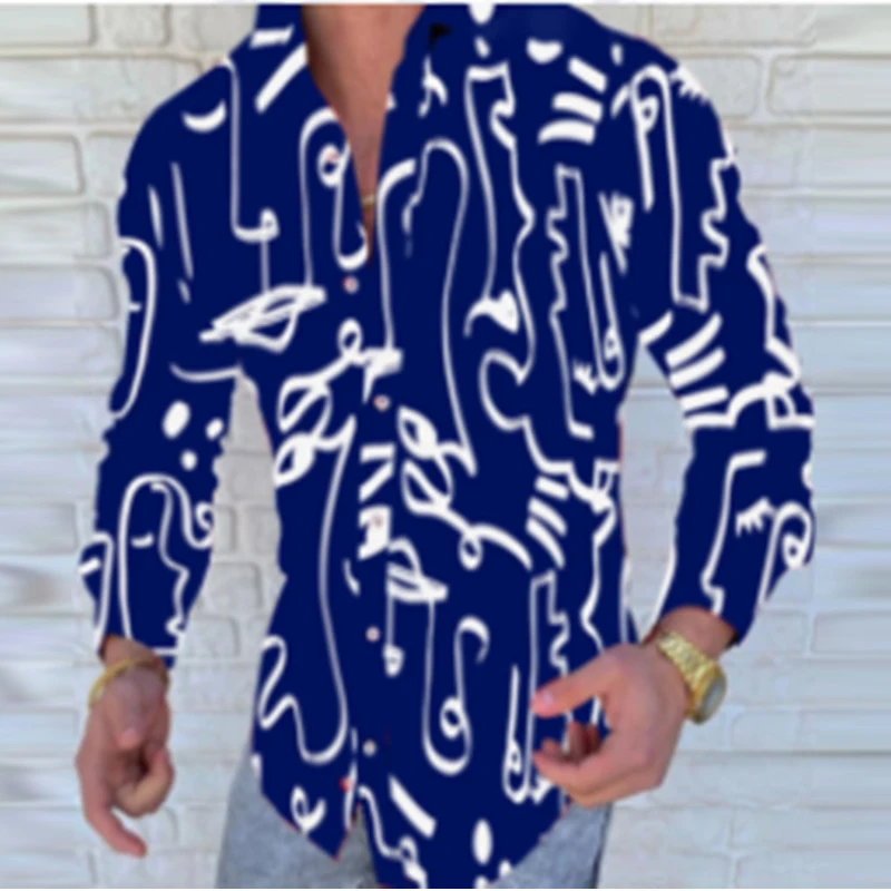 Рубашка мужская с длинным рукавом и цветочным принтом, модная блузка в Корейском стиле, повседневная одежда для осени