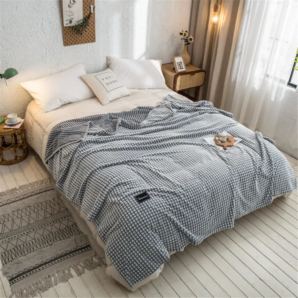 Плед для кровати из кораллового флиса, пледы серого цвета, односпал...
