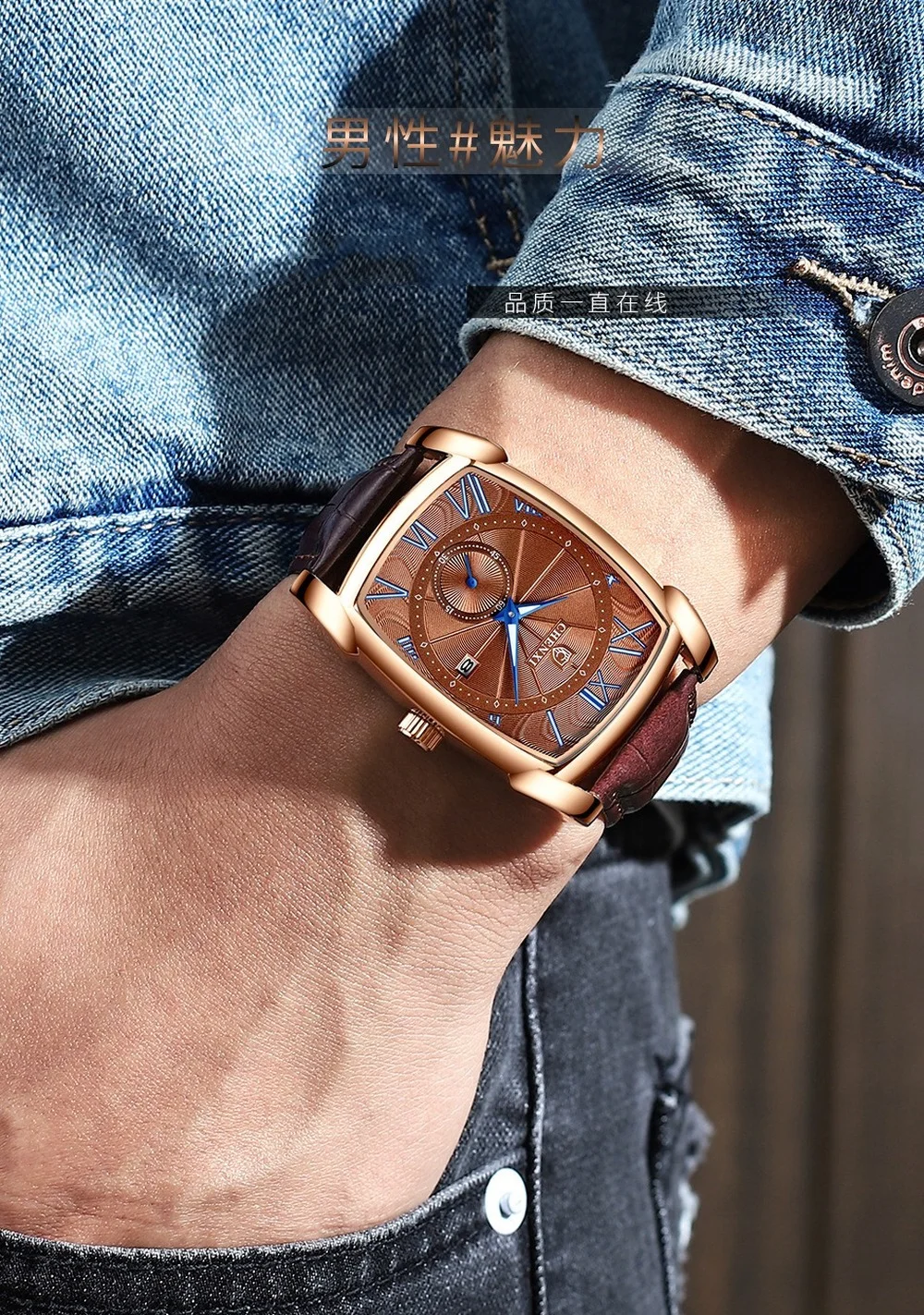 Часы мужские водонепроницаемые с кожаным ремешком и римскими цифрами