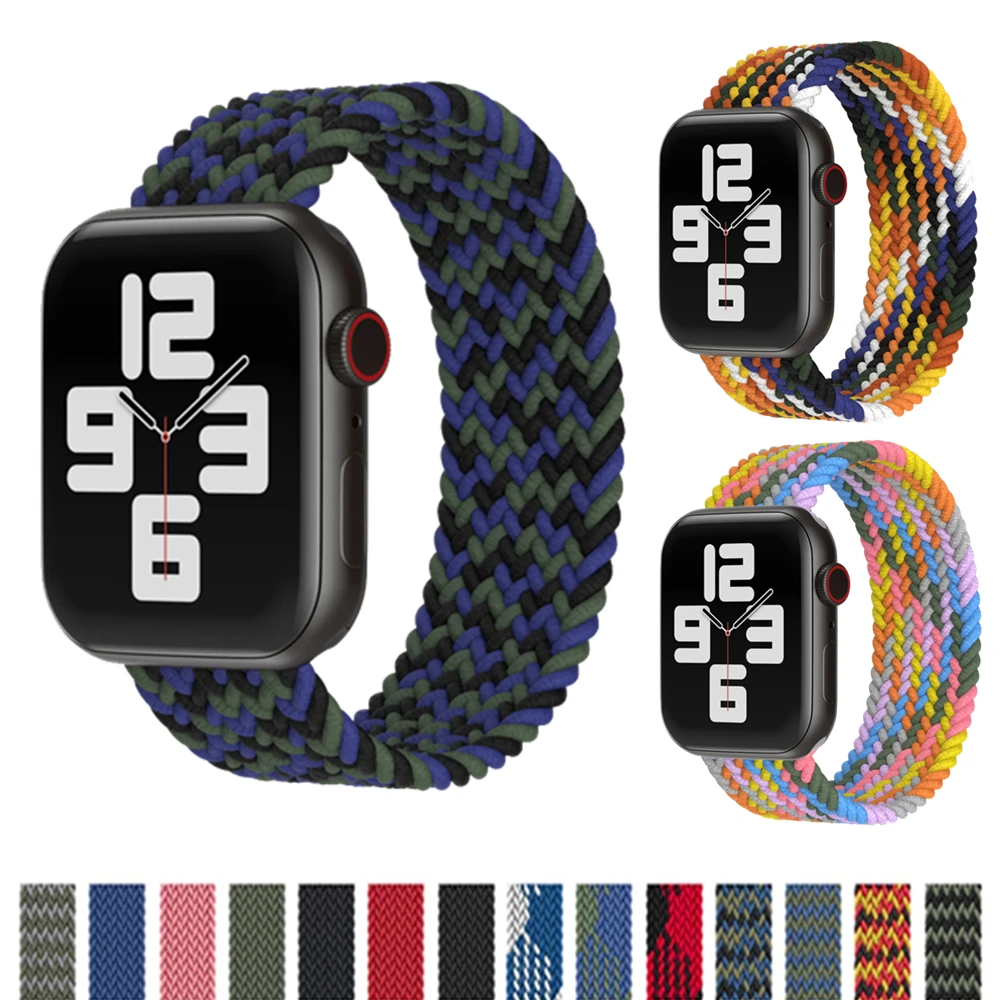 Ремешок плетеный нейлоновый для Apple Watch Se, эластичный браслет для Apple Watch Series 3 4 5 SE 6, 44 мм 40 мм 42 мм 38 мм