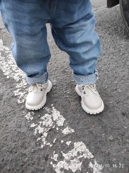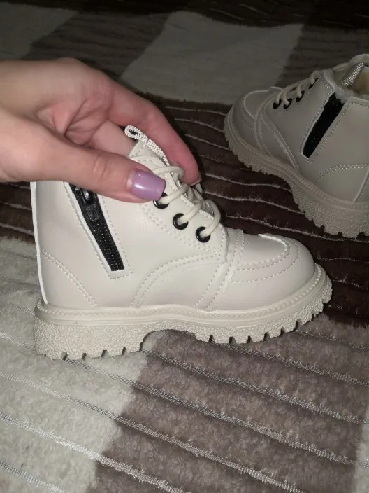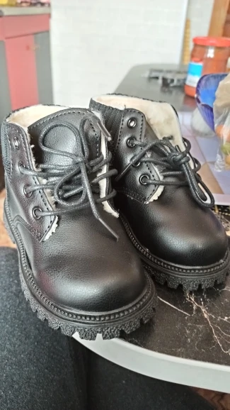 Заказала 15 сентября получила 12 октября, ботинки мягкие, стильные, как на фото, спереди есть лёгкая потертость и деформированность, но для меня не критично т.к. при ходьбе дочка все равно носы сбивает. Смотрятся круто, сама б носила такие. Материал тонкий, мех синтетический, на осень да, зимой холодно будет думаю.