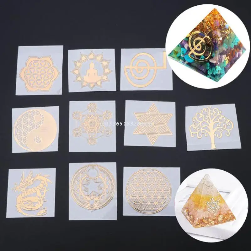 10 шт. энергии башня Orgonite узор паста Медь Пирамида с наклейкой ...