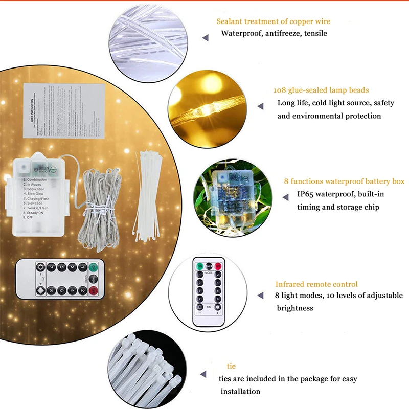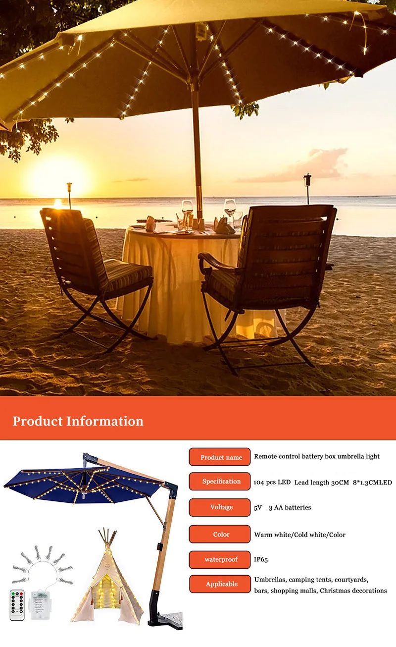 Уличная Водонепроницаемая светодиодная гирлянсветильник с зонтиком, 104 шт., Ip65, Rgb, для сада, патио, пляжа, террасы, палатки, декоративная лампа