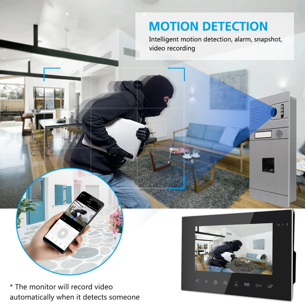 Видеодомофон Jeatone со сканером отпечатков пальцев для виллы AHD960P с датчиком движения и углом обзора 120