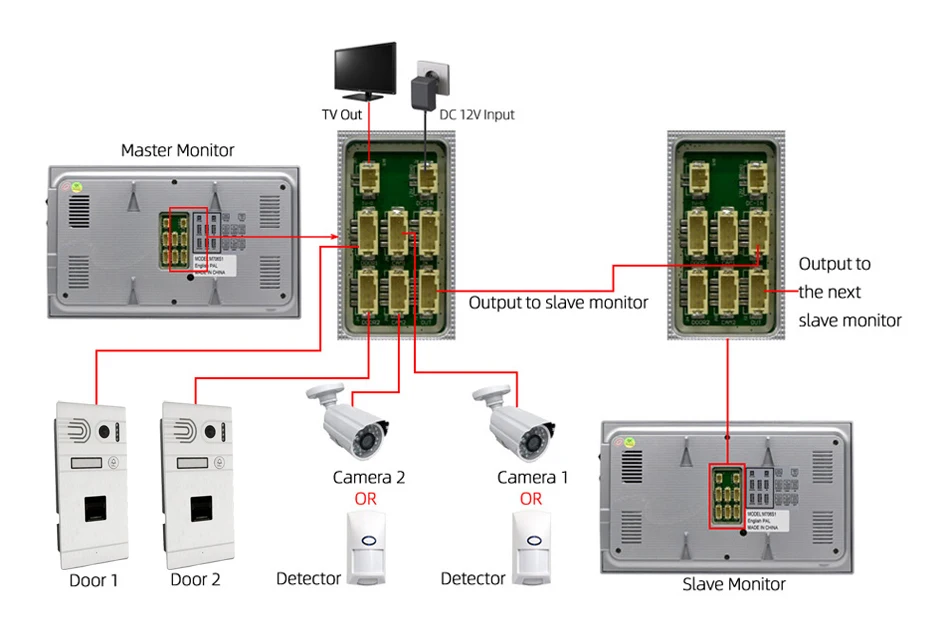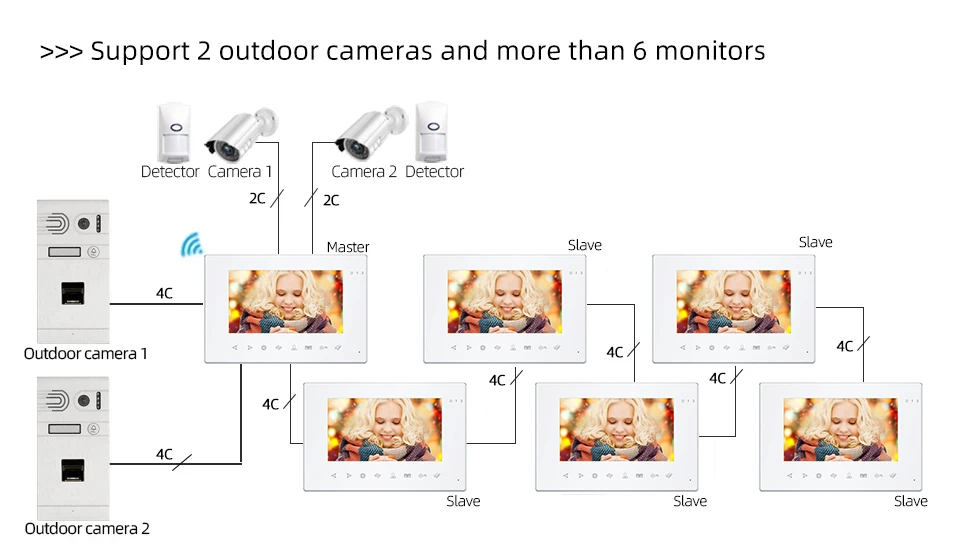 Модель:Главный монитор: 86714Рабочий монитор: 84714-AHDДверной звонок: 84211F-AHD1.3F: отпечаток пальца, этот дверной звонок может разблокировать замок с отпечатком пальцаAHD1.3: аналоговый высокой четкости, 1.3 миллиона пикселей.Этот Дверной звонок оснащен ЧИПАМИ AHD CMOS и имеет отличную визуальную производительность.