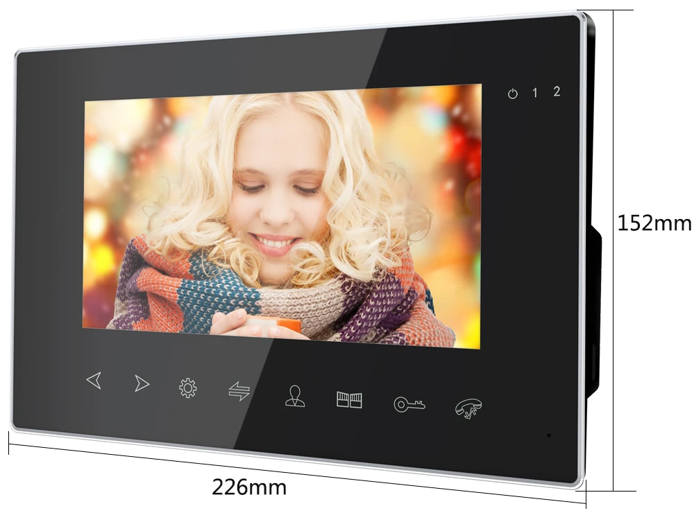 * Дисплей: 7 "TFT LCD(16:9),1024(H)x600(V)* Разблокировка: монитор, разблокировка смартфона и планшета* Память: карта Micro SD (не включает, макс. 32 ГБ)* Источник питания: внешний DC12V* Несколько Интерком: до 6 мониторов* Несколько дверных звонков: до 2 Дверных колокольчиков* Мелодия звонка: 16 мелодий на выбор* Изготовлен из акриловой проволочной панели и TFT дисплея* Установка: поверхностное крепление (настенное)