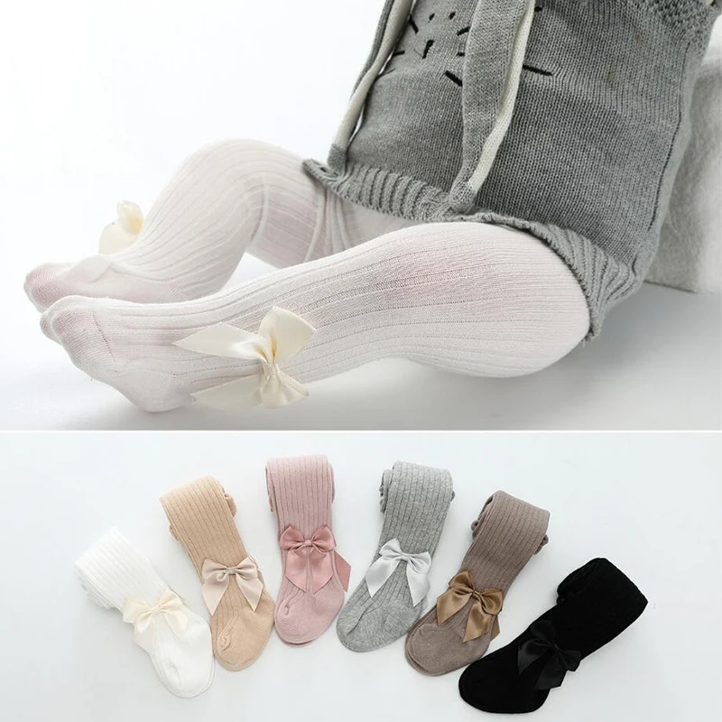 Зимние Колготки для маленьких девочек, качественные мягкие хлопковые милые теплые колготки с бантом для новорожденных, однотонные колготки для маленьких девочек, облегающие Осенние Колготки