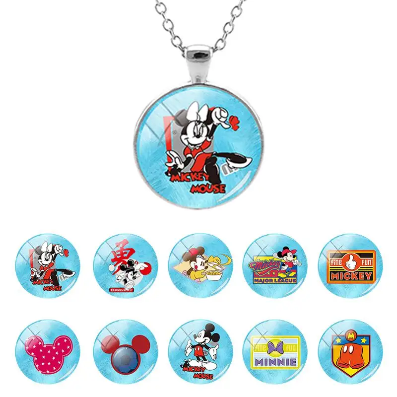 Дисней Микки Маус Печать Мода 25 мм стеклянный купол кулон Длинная цепочка ожерелье для детей выходные вечерние кабошон ювелирные изделия MIK881-25Фотографии товара: