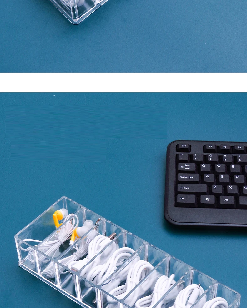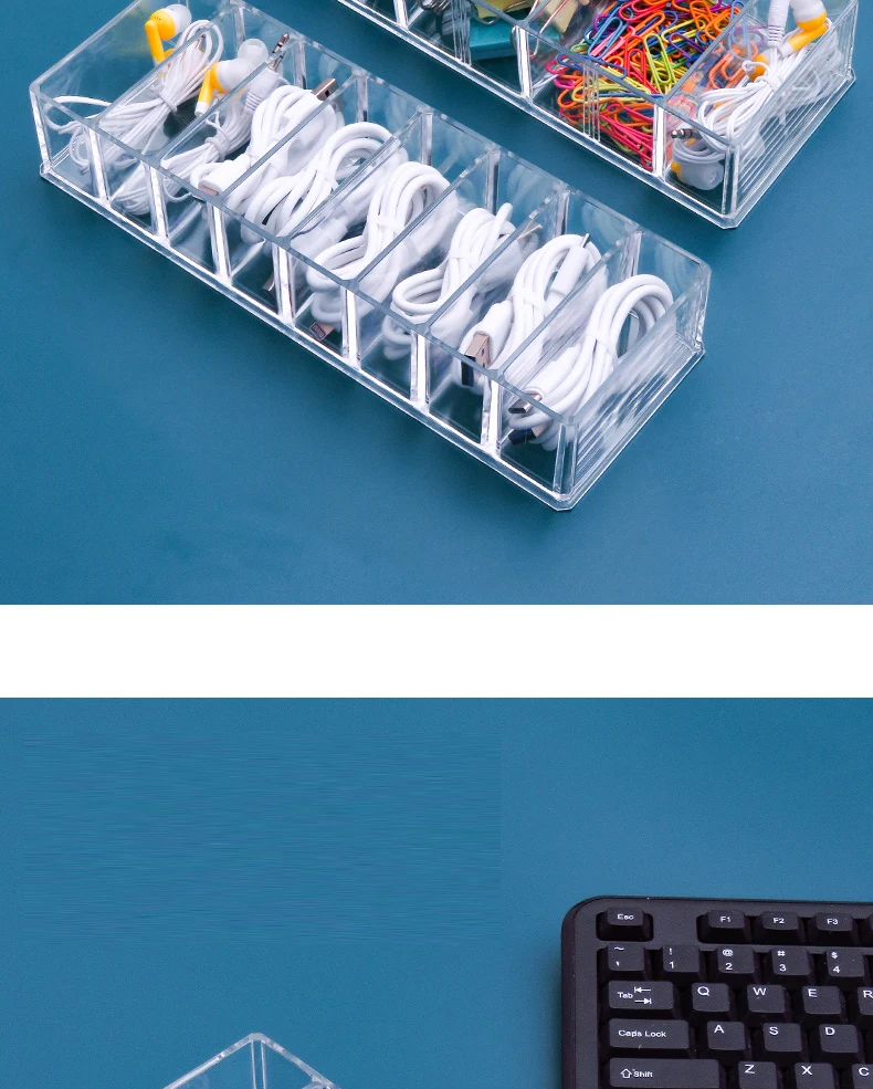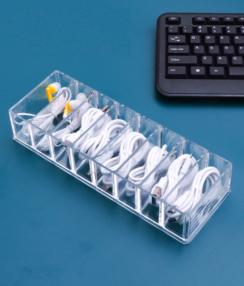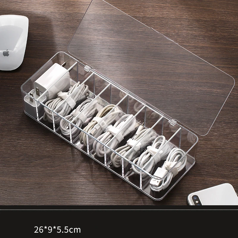 Прозрачный визуальный Настольный кабель для передачи данных разделительный ящик для хранения мобильный телефон кабель для зарядки наушников шнур питания Сортировка и фиксацияОписание:1. Хорошо организовывайте аксессуары для электроники и Попрощайтесь с вашими кабелями. 8 ячеек достаточно для хранения зарядного кабеля, вы также можете положить зарядную головку и bluetooth-гарнитуру.2. Кабели для зарядки легко хранить, легко брать и легко использовать с большим отверстием коробки. Наклейте этикетку, которую легко найти, но также можно заменить в любое время.3. Изготовлен из пластика, полупрозрачная матовая текстура, гладкие детали без заусенцев, прочные и удобные в использовании.4. Благодаря компактному размеру и легкому пластиковому материалу, коробка для хранения идеально подходит для путешествий, подходит для вашего портфеля или багажа, не занимает много места.Спецификация:Материал: пластикРазмер: app.26x9x5.5cm/10.23x3.54x2.16inЦвет: прозрачныйКоличество: 1 шт.Посылка: 1 коробка для хранения данныхПримечание:Возможны отклонения в 0-1 см вследствие измерений вручную. Пожалуйста, убедитесь, что вы не возражаете, прежде чем сделать ставку.Из-за разницы между различными мониторами изображение может не отражать фактический цвет изделия. Спасибо!
