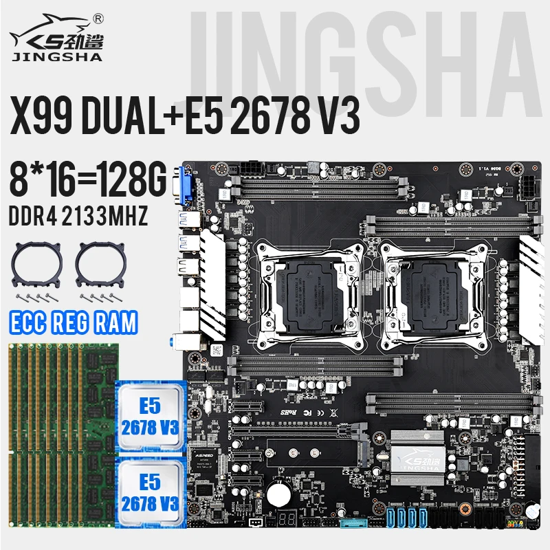 1 * x99 двойная материнская плата + 2 * E5 2678V 3 CPU + 8 * DDR4 16GB = 128GB 2133MHz
